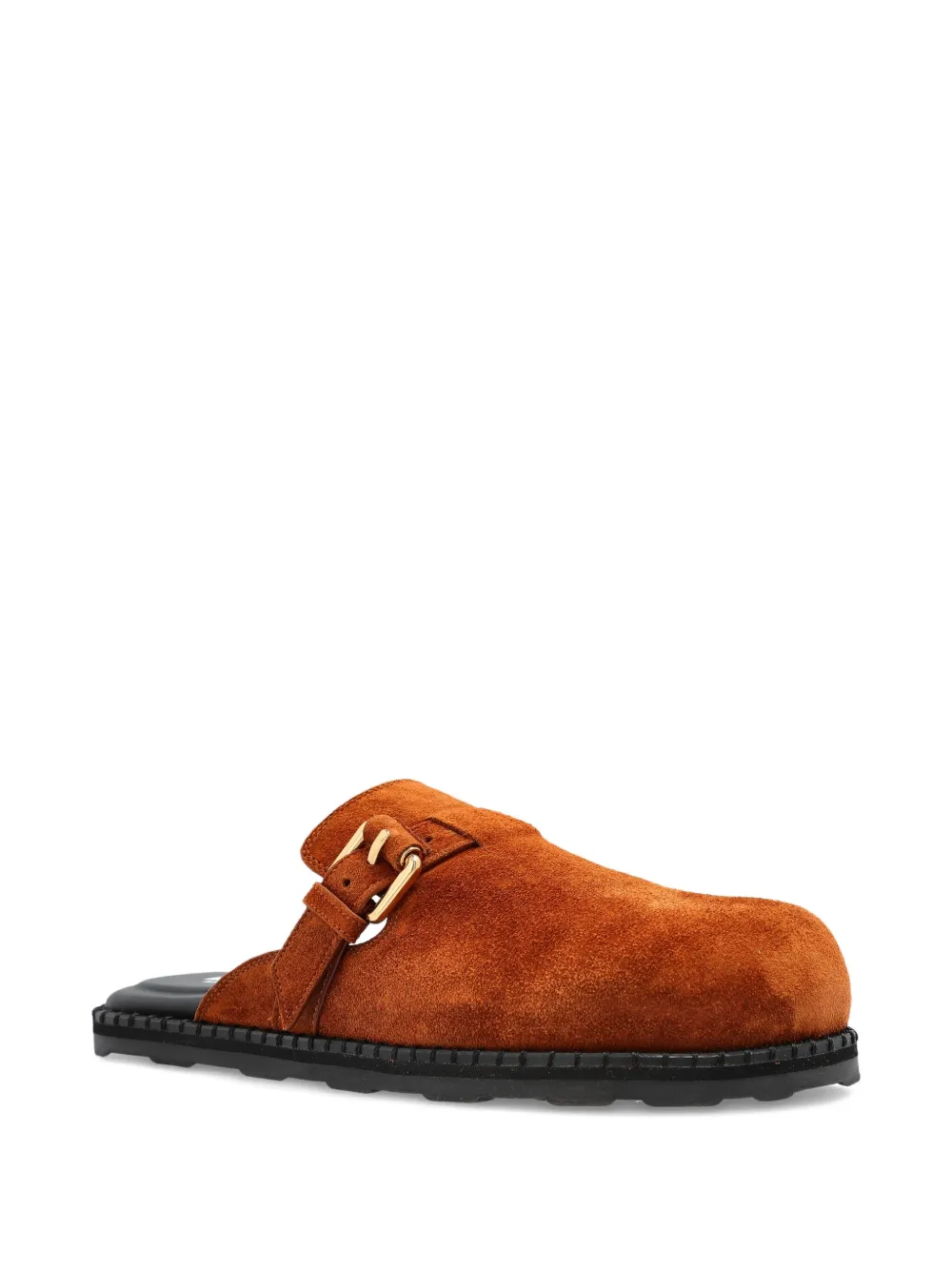 Застежка на пряжке коричневого цвета, замшевый верх, плоская подошва, круглый носок, модель slip-on