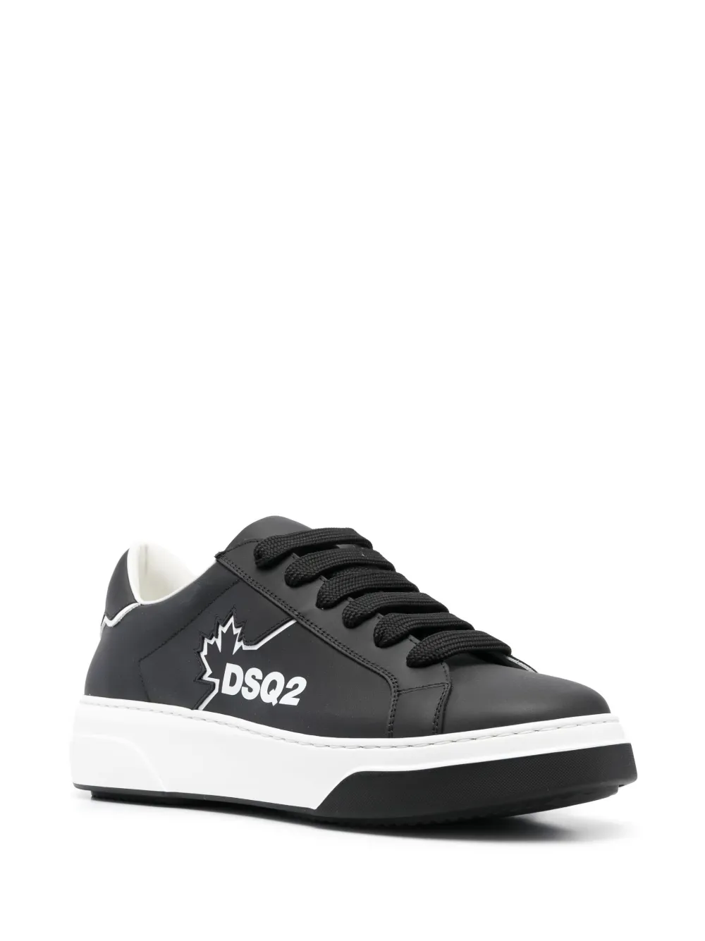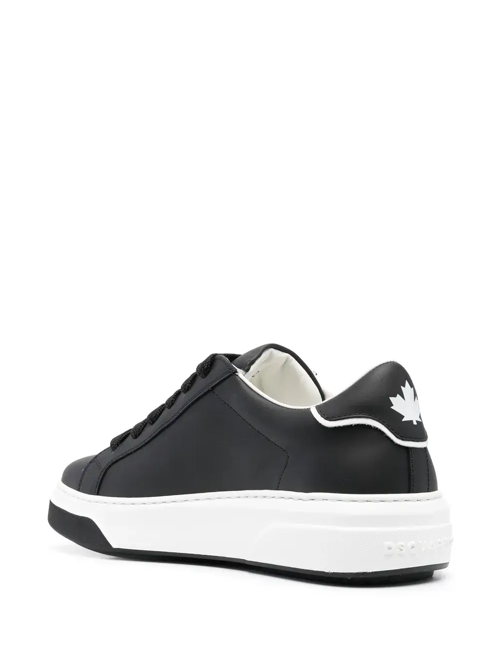 Черный/белый, телячья кожа, логотип сбоку, принт в виде кленового листа, закругленный носок, шнуровка спереди, язычок с логотипом, кожаная стелька с логотипом и плоская резиновая подошва.