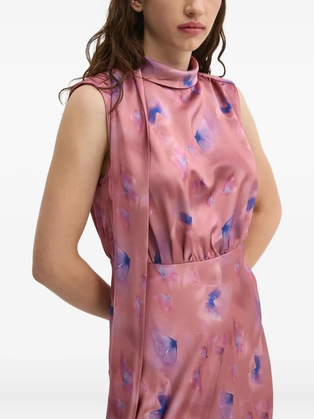 Платье с принтом бабочек пыльной розы, без рукавов, с завязкой на шее, облегающим лифом