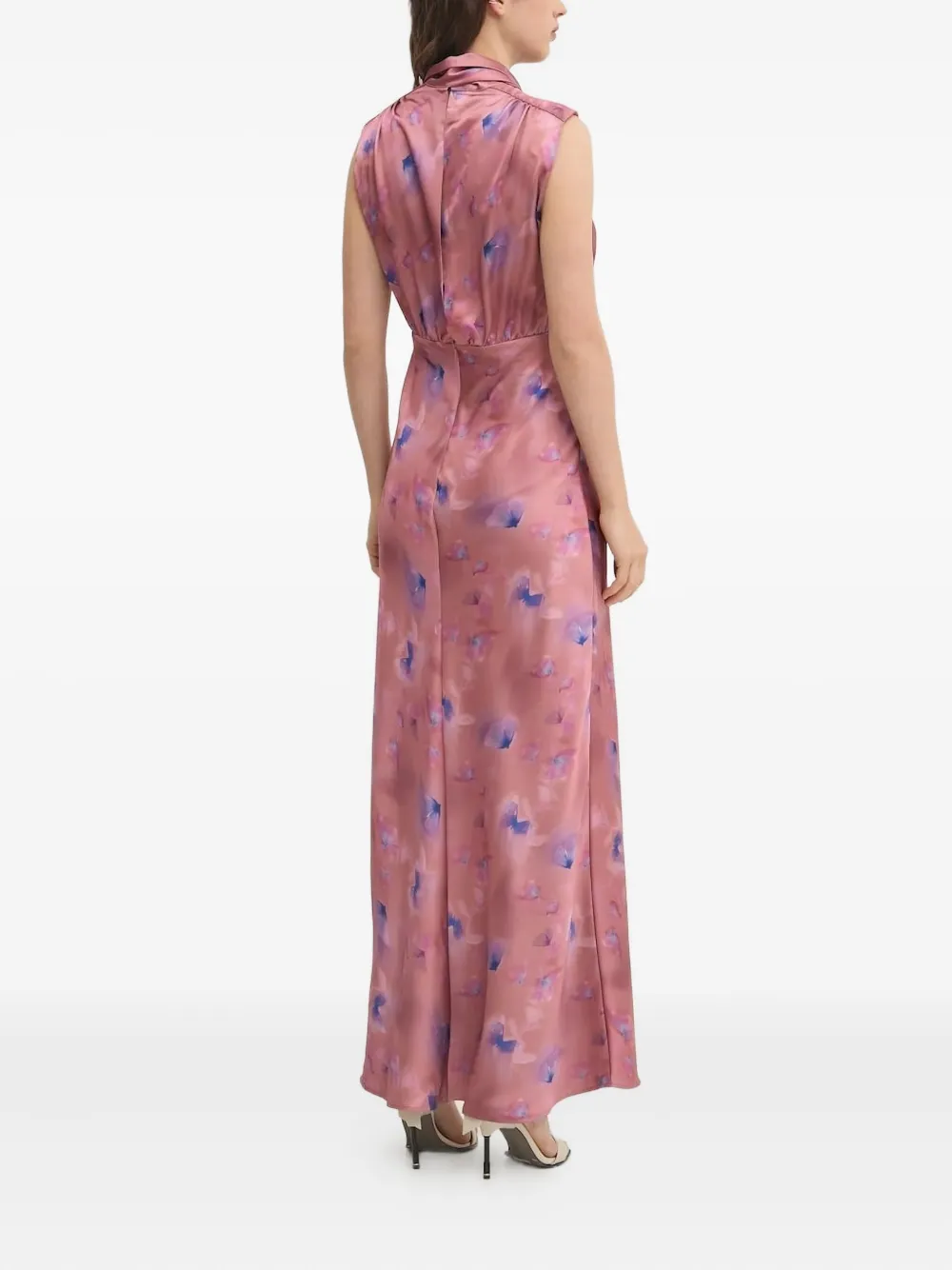 Платье макси из атласа с принтом бабочек HUGO, розовый
