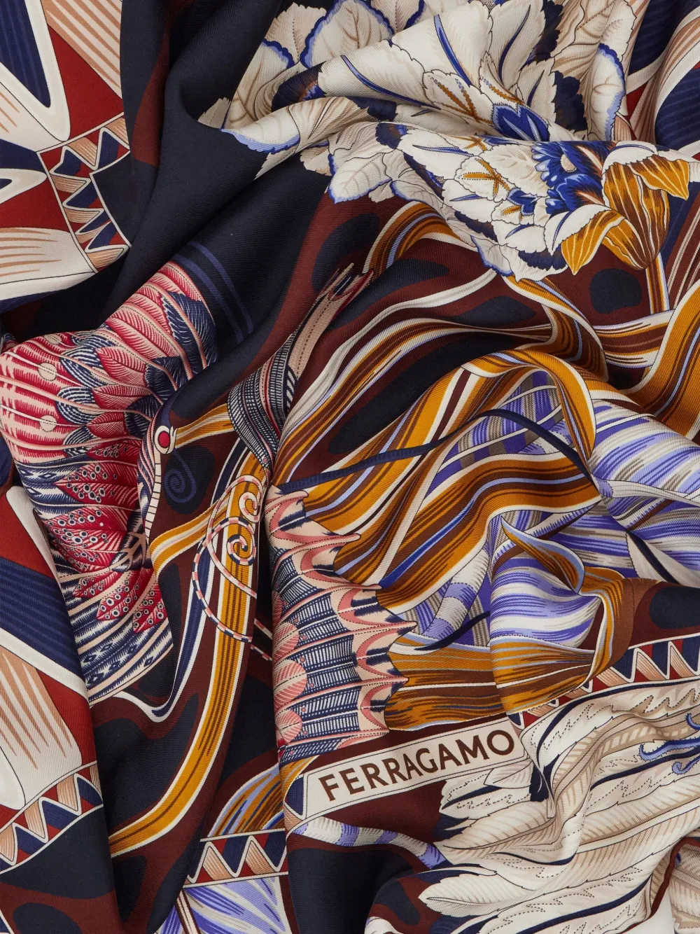 Шелковый шарф с принтом бабочек Ferragamo, синий 51 960₽