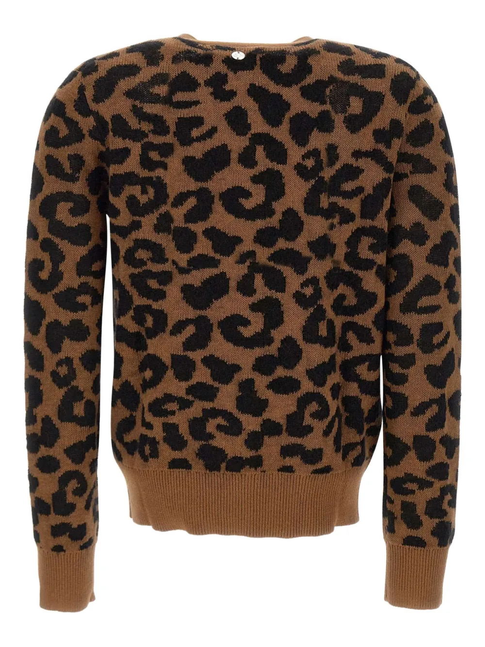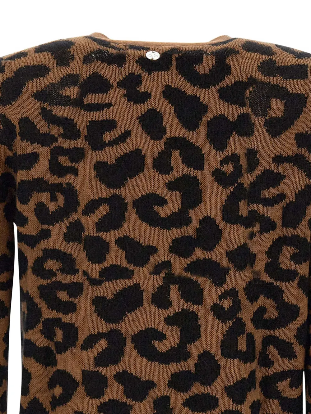 Коричневый анималистичный принт, V-образный вырез, застежка на пуговицы, длинные рукава