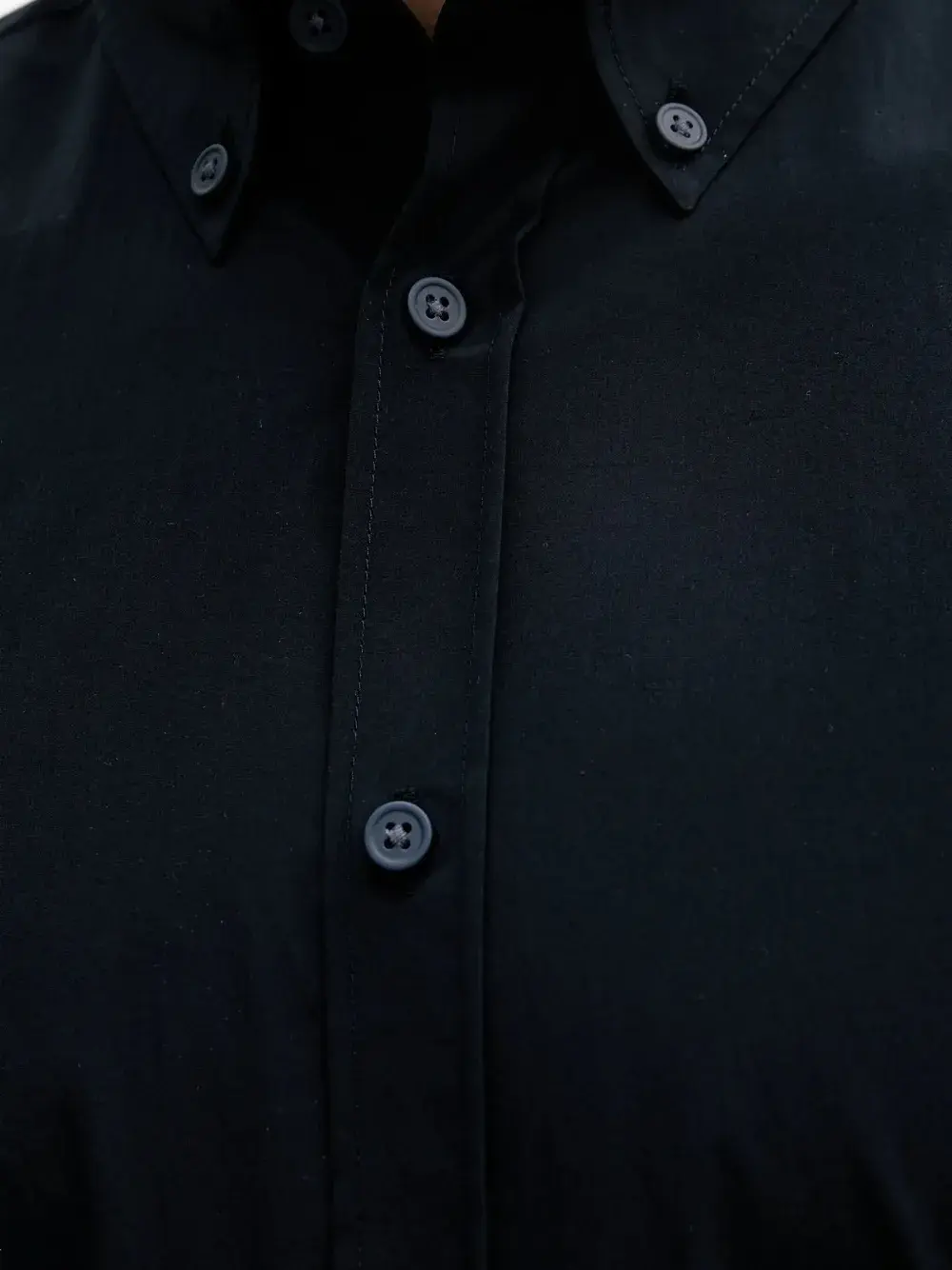 Темно-синие длинные рукава, застежка на пуговицы, воротник-стойка