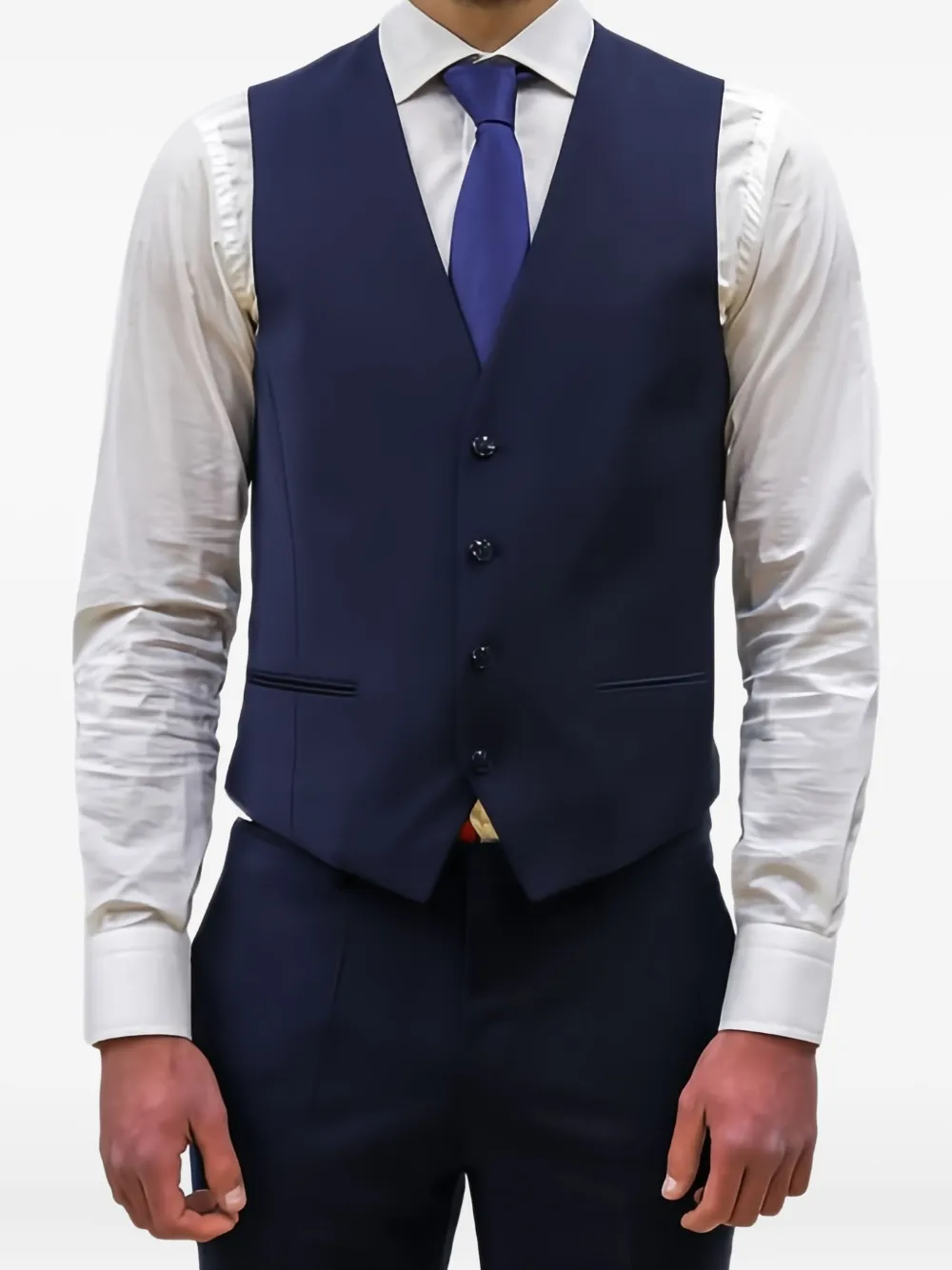 Темно-синие застежки на пуговицы, прорезные карманы, смесь натуральной шерсти