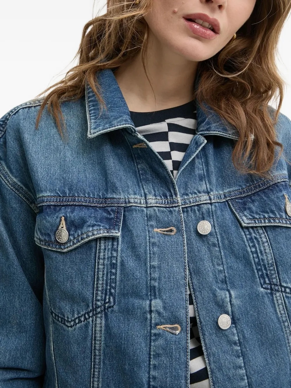 Синий деним, застежка на пуговицы, карманы с клапанами, фирменные пуговицы