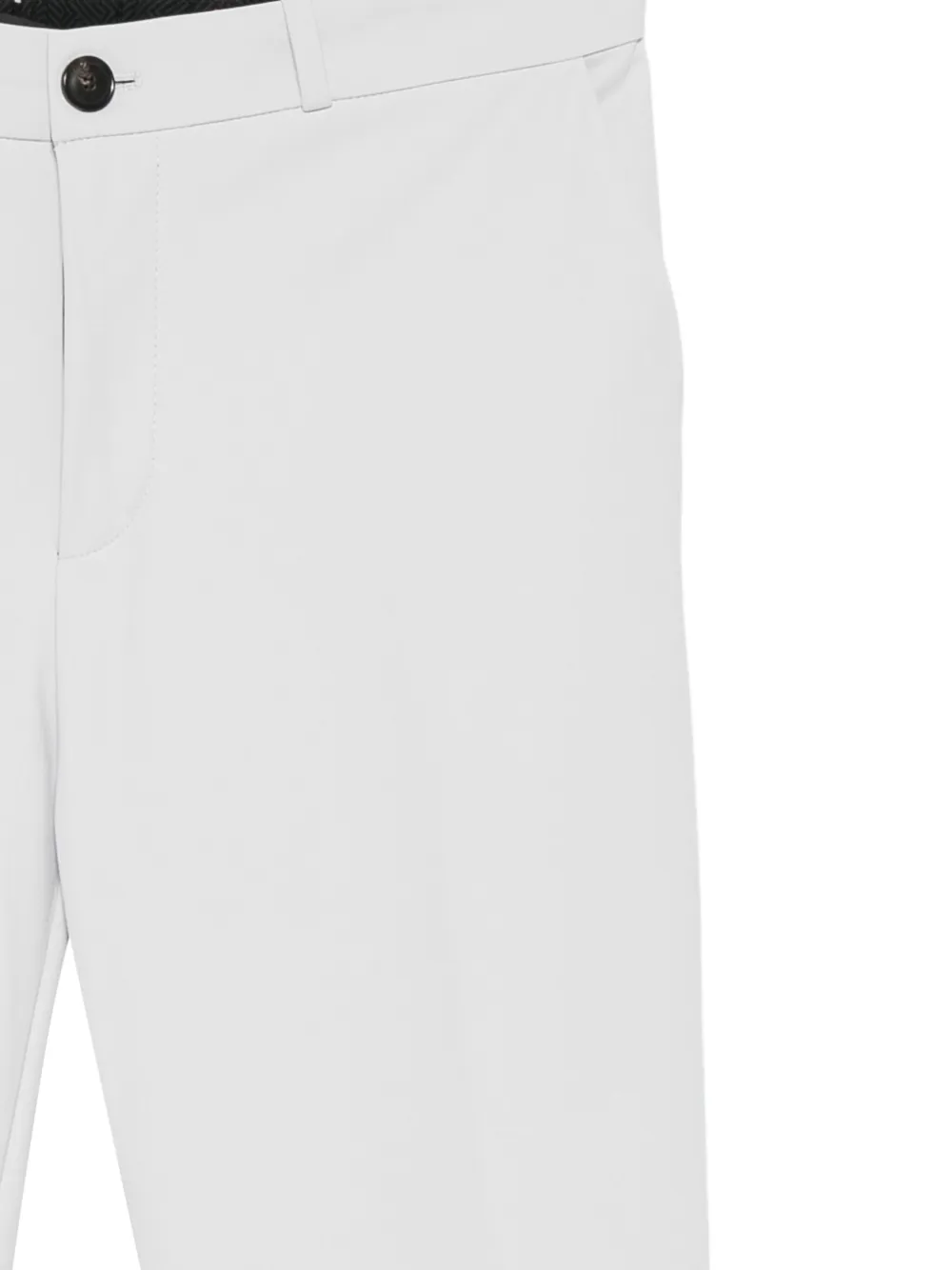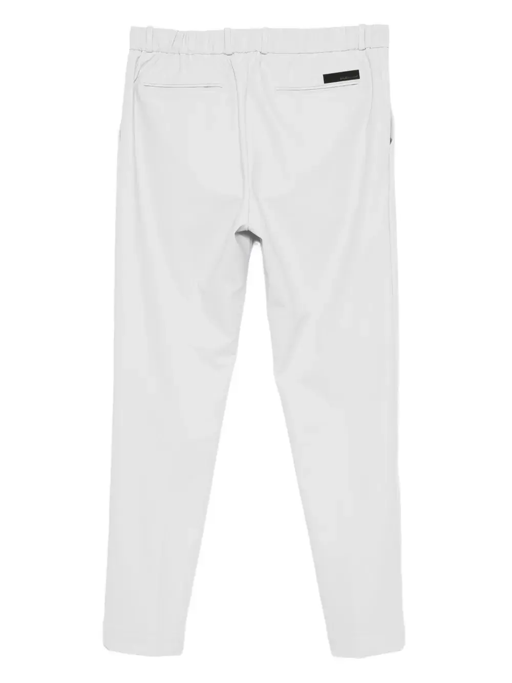 Серые брюки со средней посадкой, прямые, с эластичным поясом и прорезными карманами.