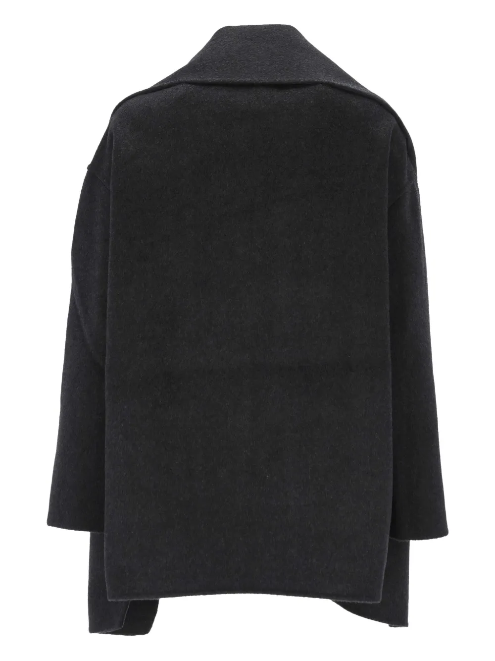 Темно-серая шерстяная застежка на пуговицы, драпированный воротник, накладной карман