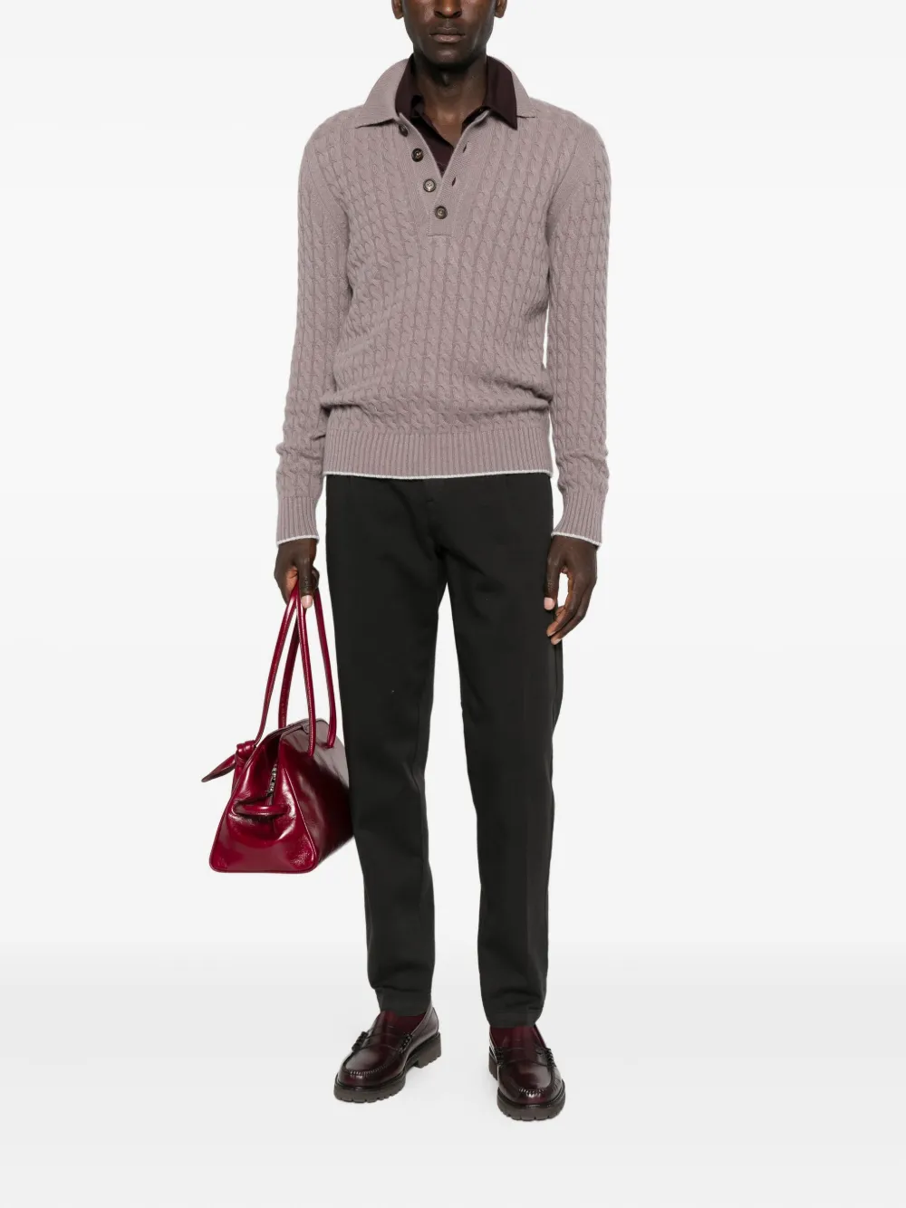 Свитер-поло косой вязки Eleventy, розовый