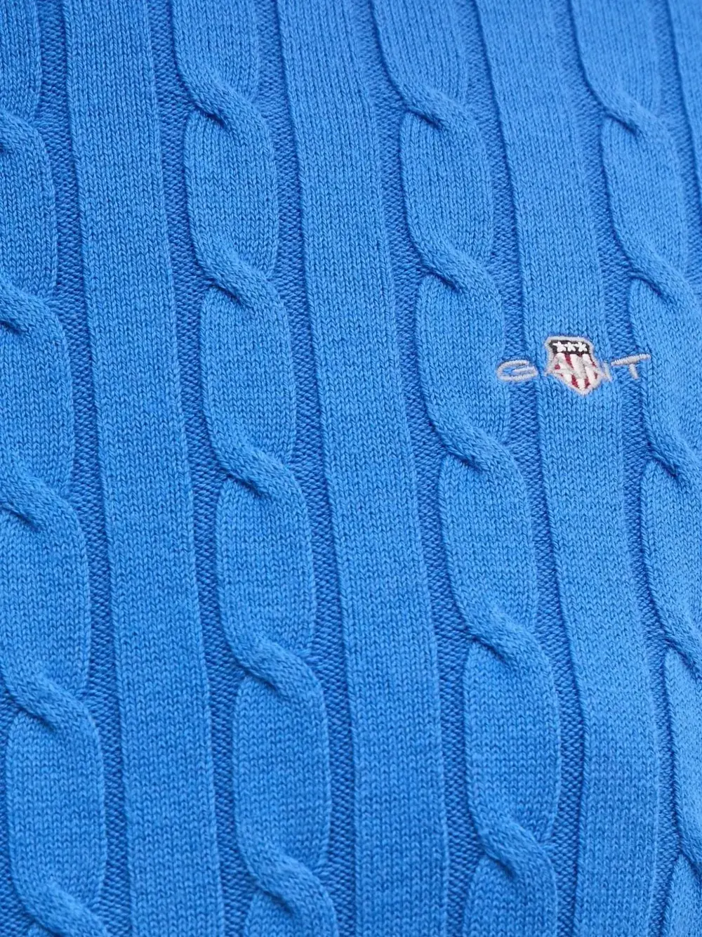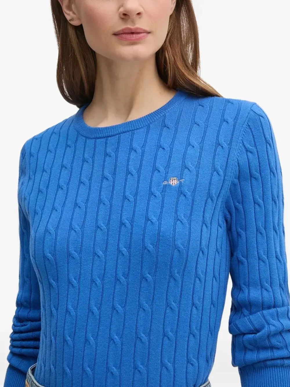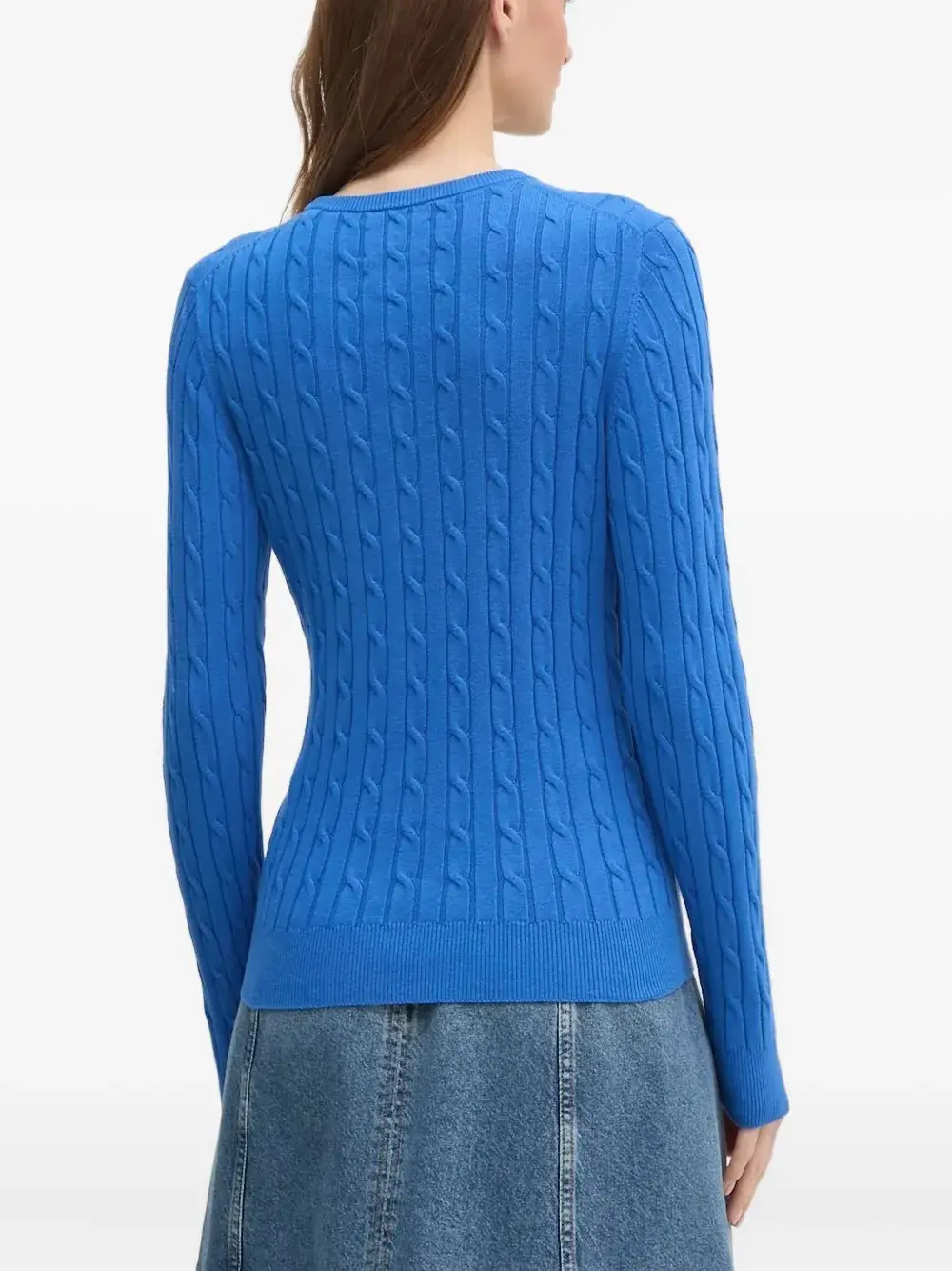 Королевский синий трикотаж с косами, длинные рукава, круглый вырез, маленький логотип