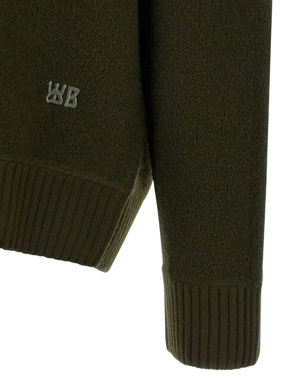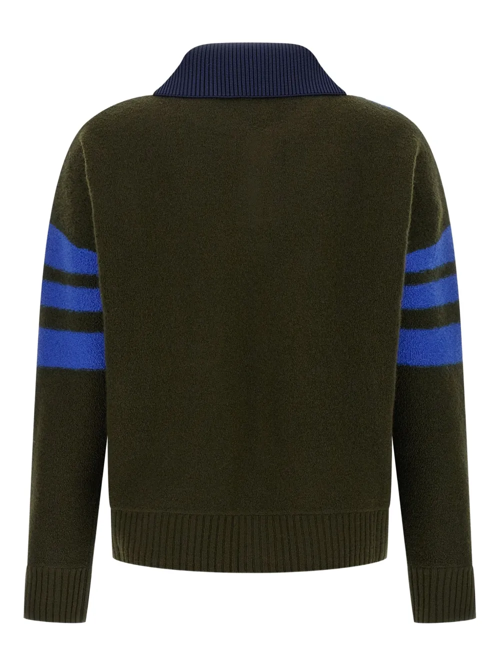 Ребристый трикотажный воротник из темно-зеленой шерстяной смеси, деталь в виде трех полосок, нагрудный карман, короткая застежка на пуговицы