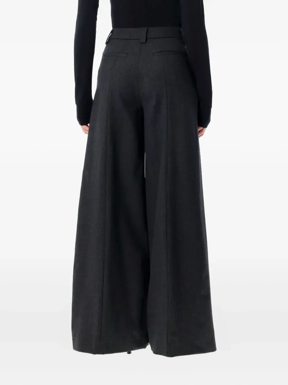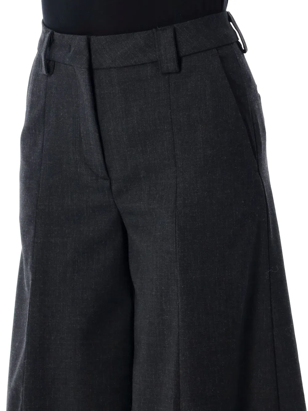 Темно-серый с высокой талией, боковыми карманами, застежкой-молнией.