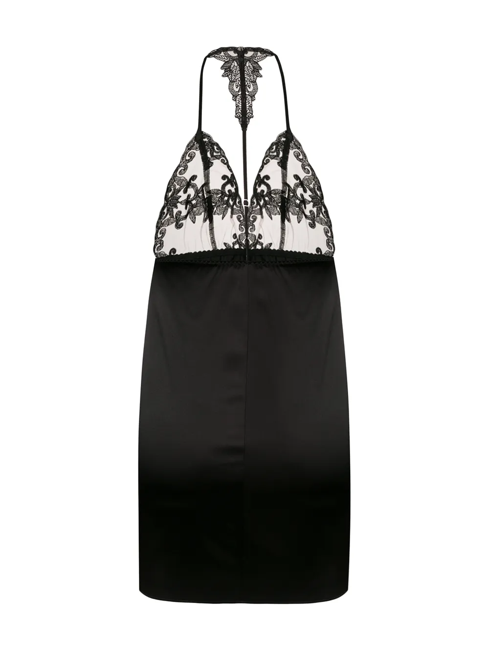 Черный топ-камисоль 'Onyx' из шелкового микса от Fleur Of England. Лямка на плечо, деталь из кружева, узкий крой. Примерка белья разрешена исключительно поверх собственного.