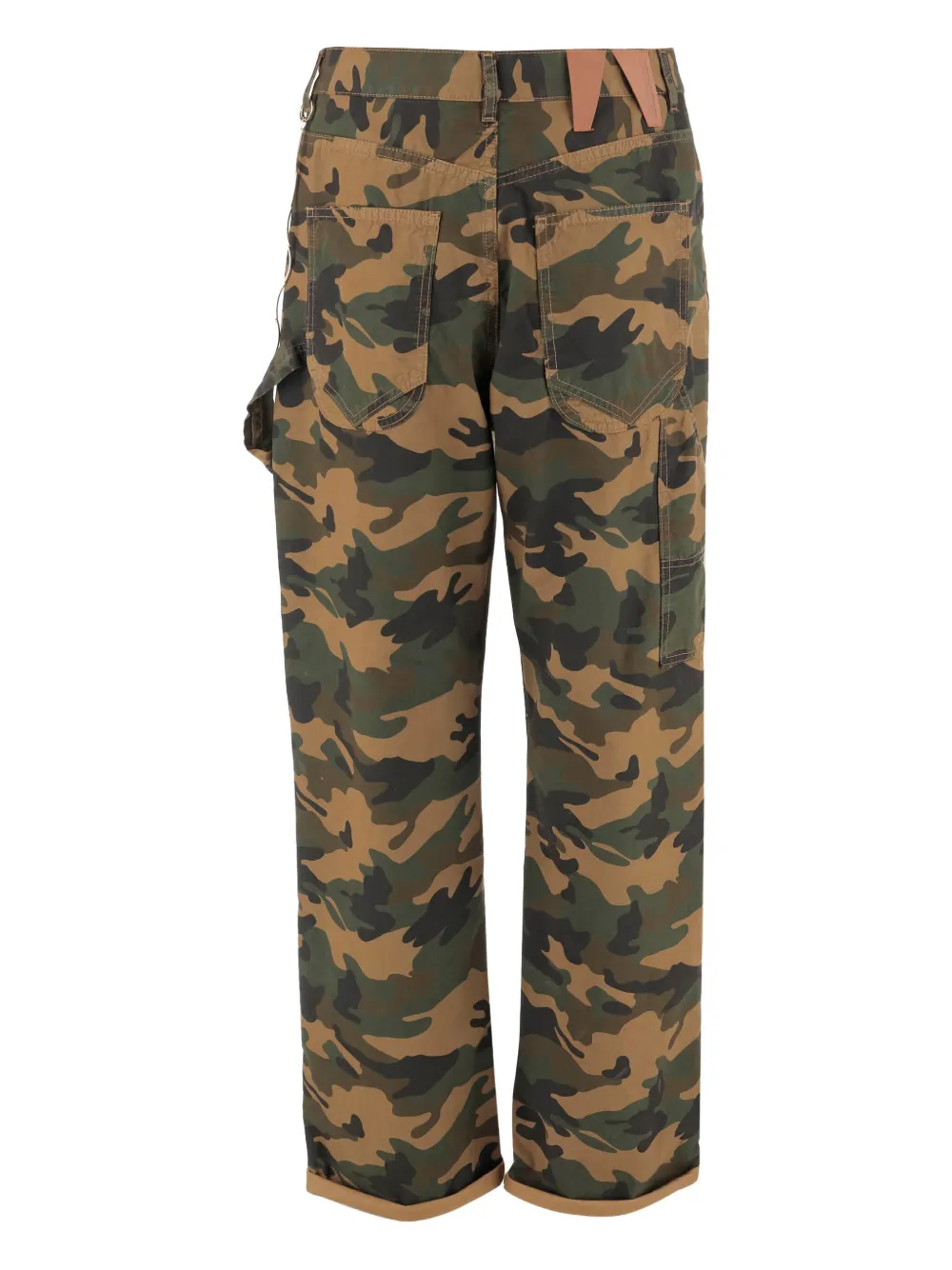 Коричневый камуфляжный узор, хлопок, пять карманов, цепочка, шлевки для ремня, нашивка с логотипом