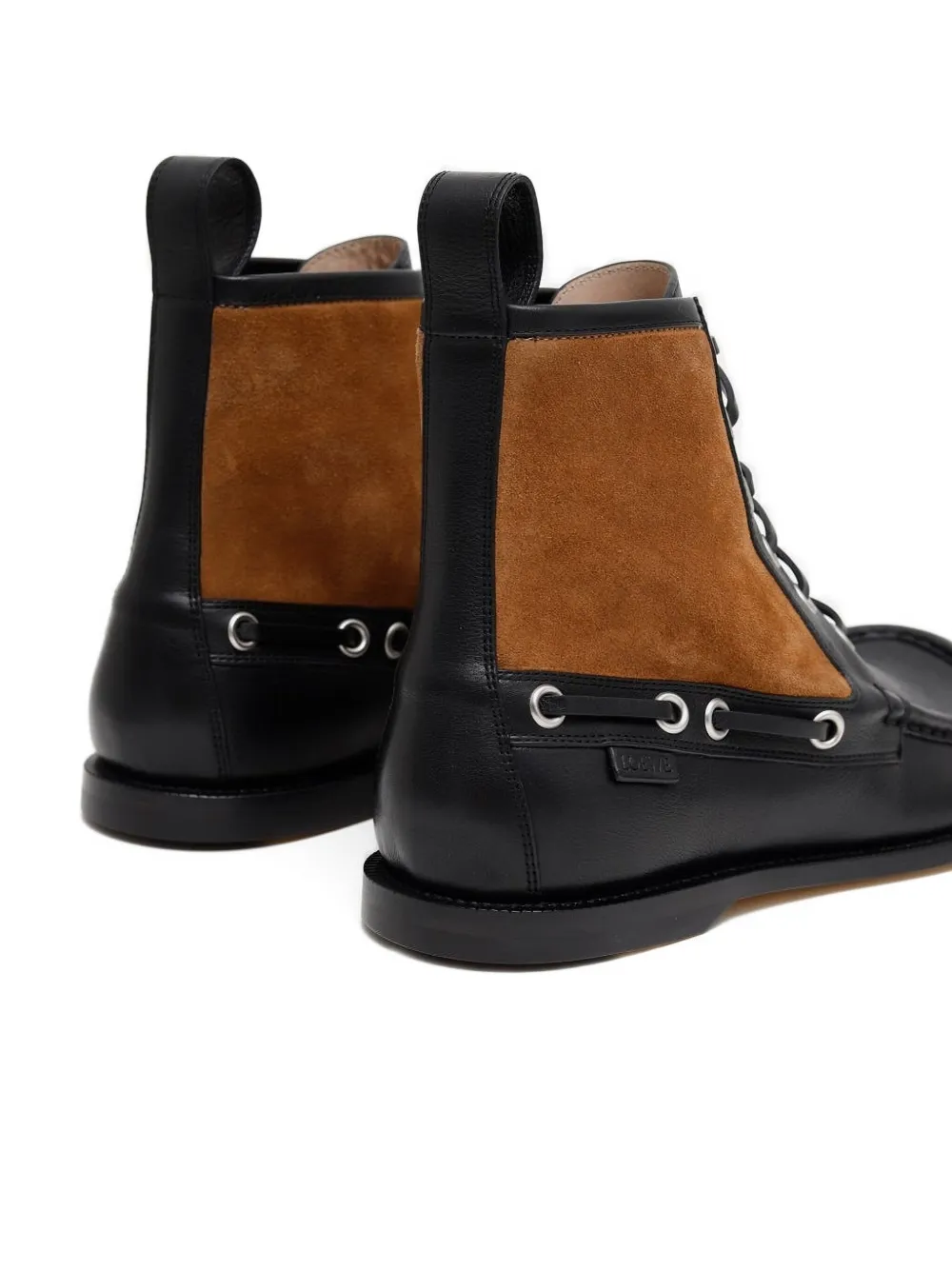 Черно-коричневые замшевые вставки, кожаный верх, шнуровка, резиновая подошва.