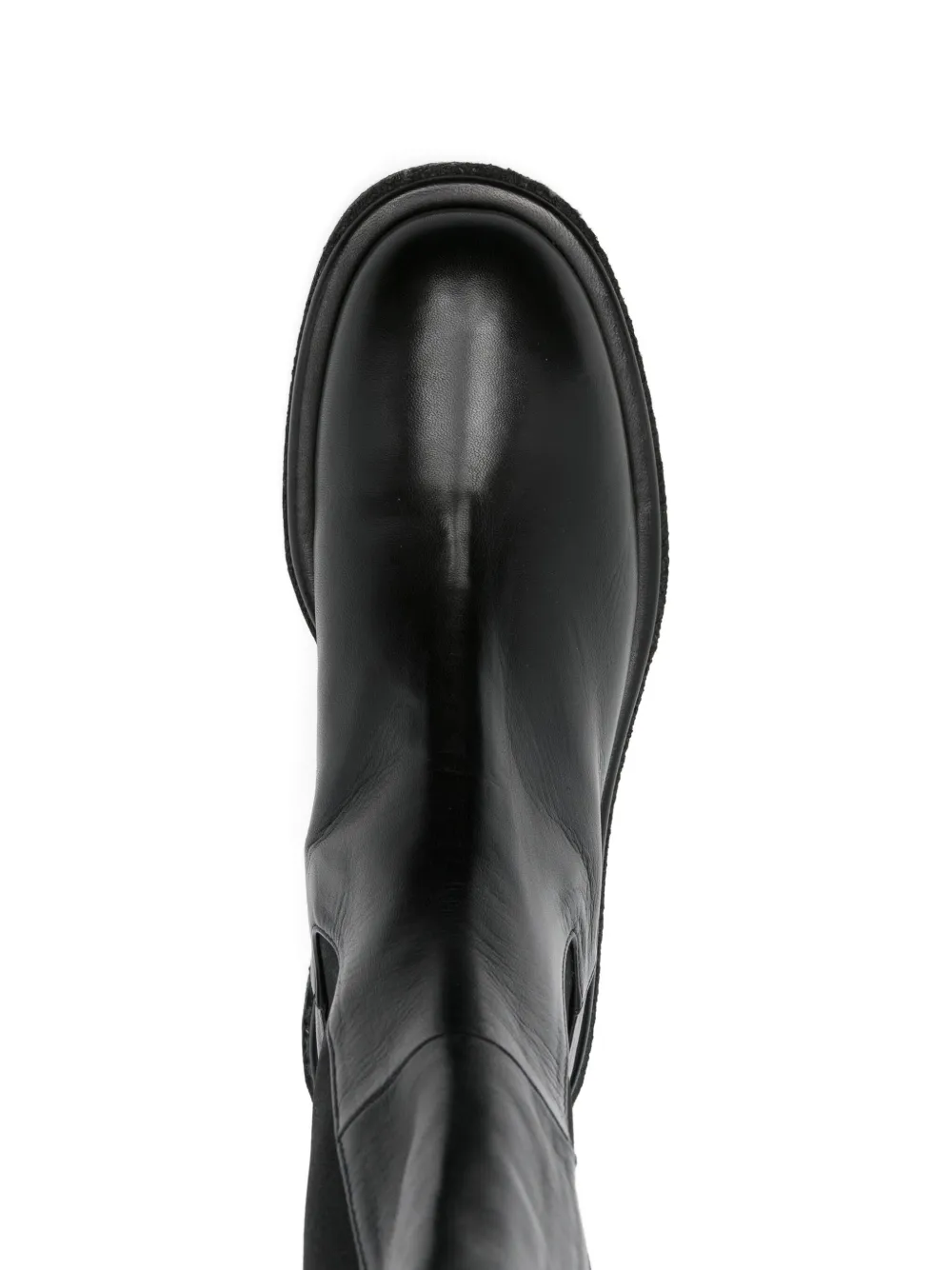 Верх из черной кожи, эластичные боковые вставки, круглый носок, плоская подошва, язычок для подтягивания