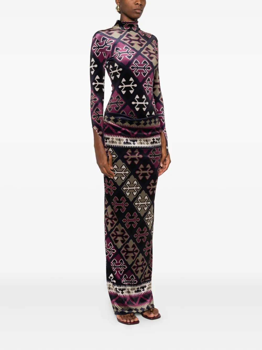 Бархатное платье макси с ковровым принтом Burc Akyol, синий