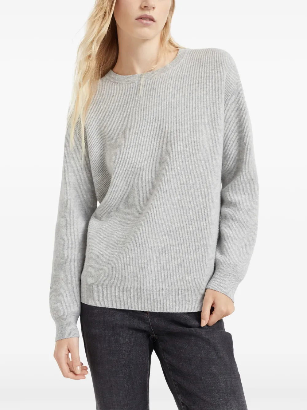 Кашемировый джемпер с круглым вырезом Brunello Cucinelli, серый