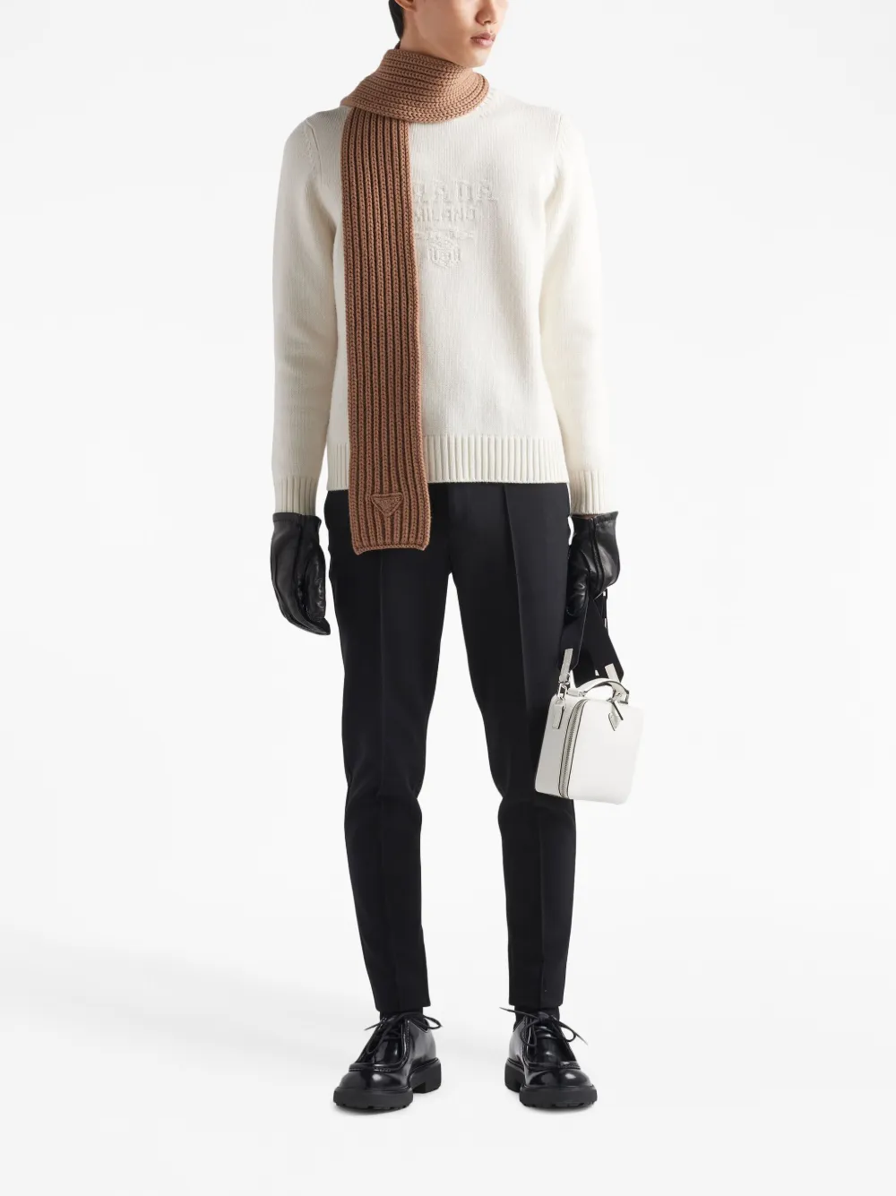Кашемировый джемпер с вышитым логотипом Prada, белый