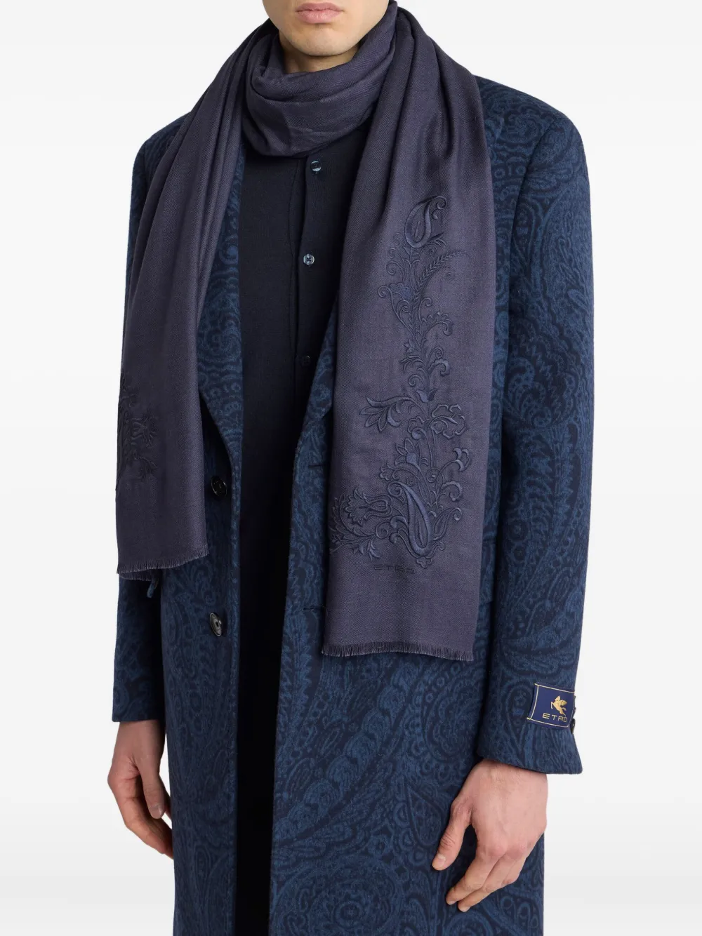 Кашемировый шарф с вышитым узором пейсли ETRO, синий