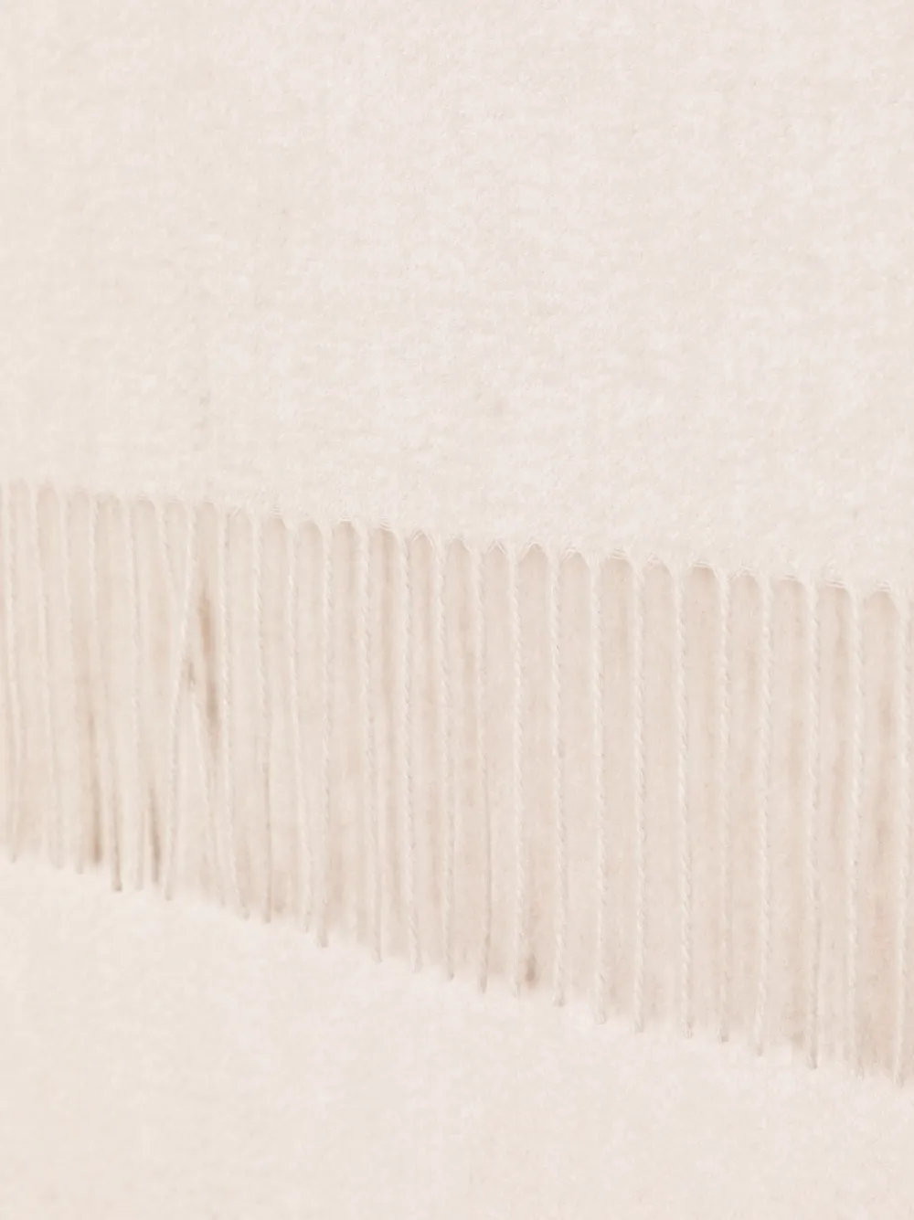 Экрю, кашемир, тонкая вязка, фактурная поверхность, прямоугольная форма и края с бахромой.