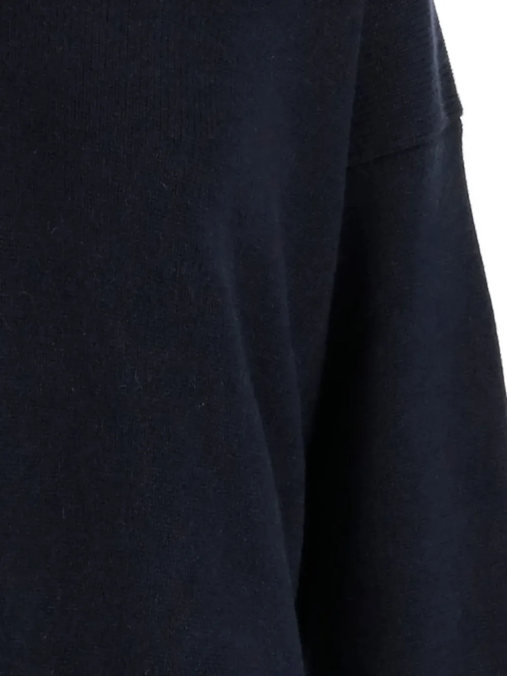 Темно-синий кашемир, V-образный вырез, спущенное плечо, длинные рукава, ребристый подол