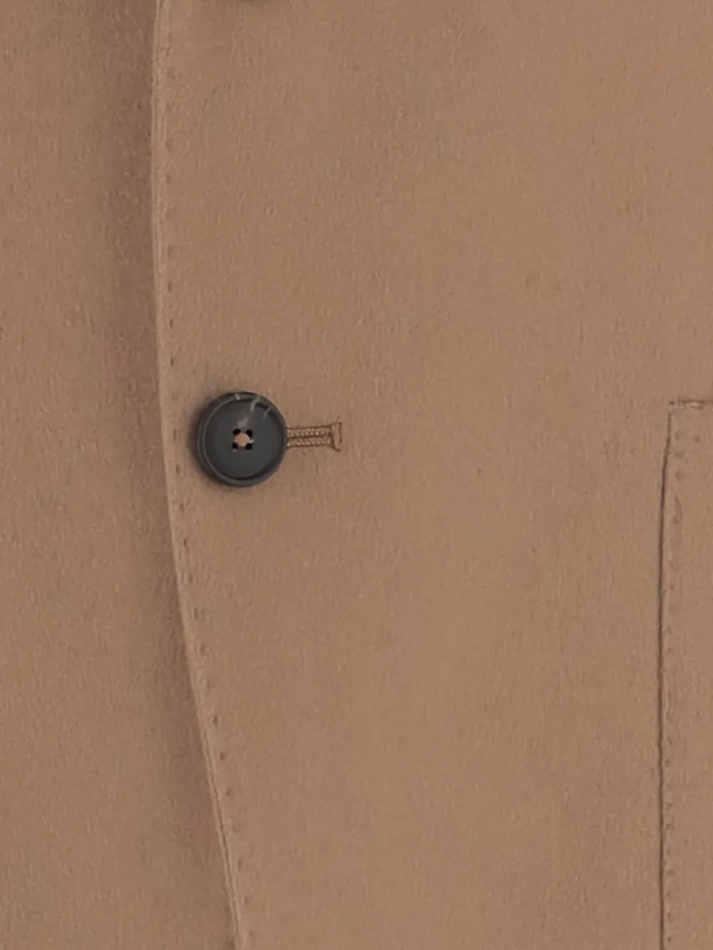 Коричневый, застегивающийся на две пуговицы, накладные карманы, заостренные лацканы, простой дизайн.