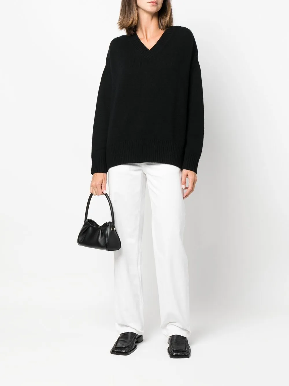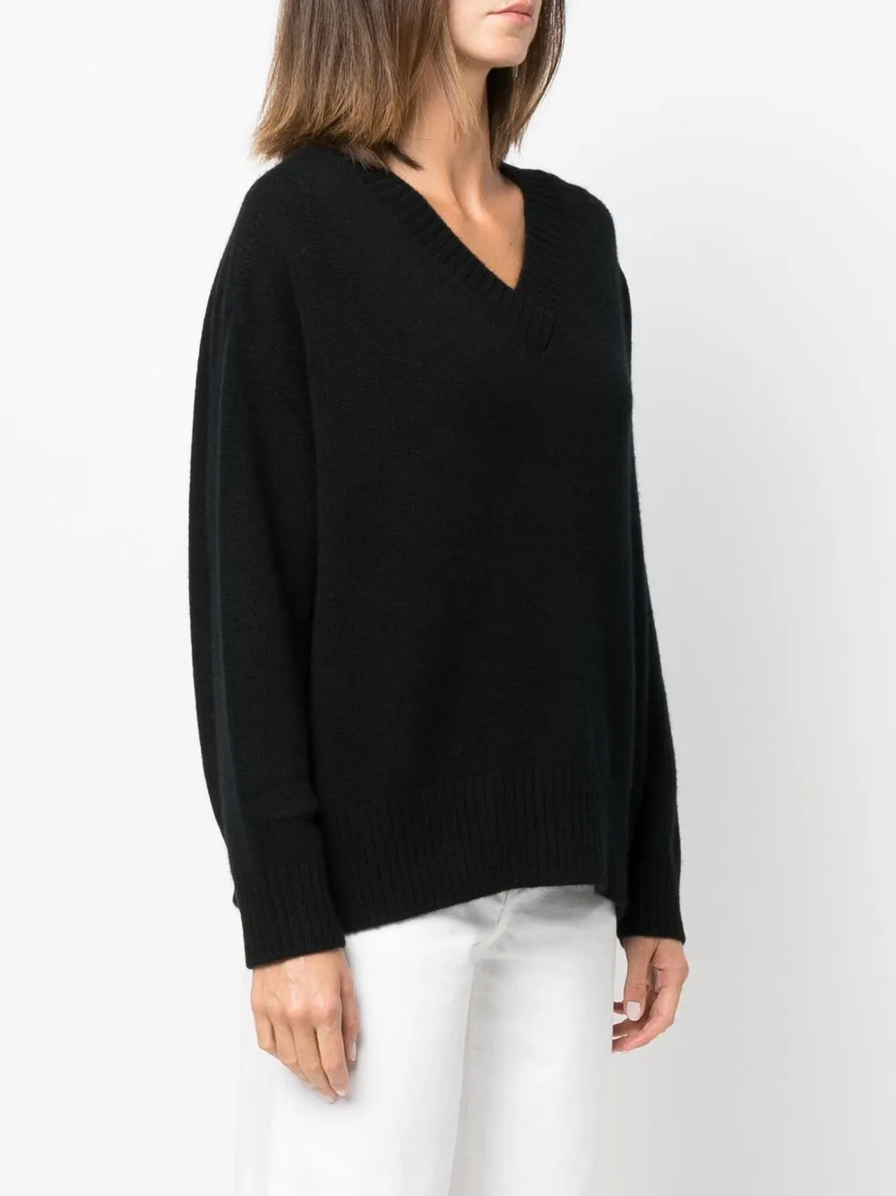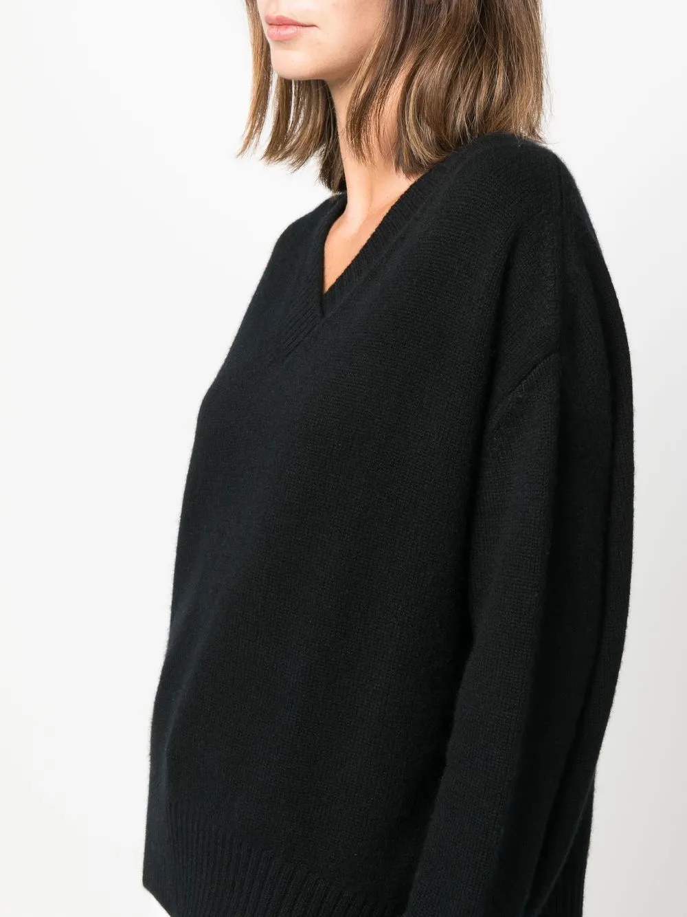 Кашемировый джемпер с V-образным вырезом ALLUDE, черный