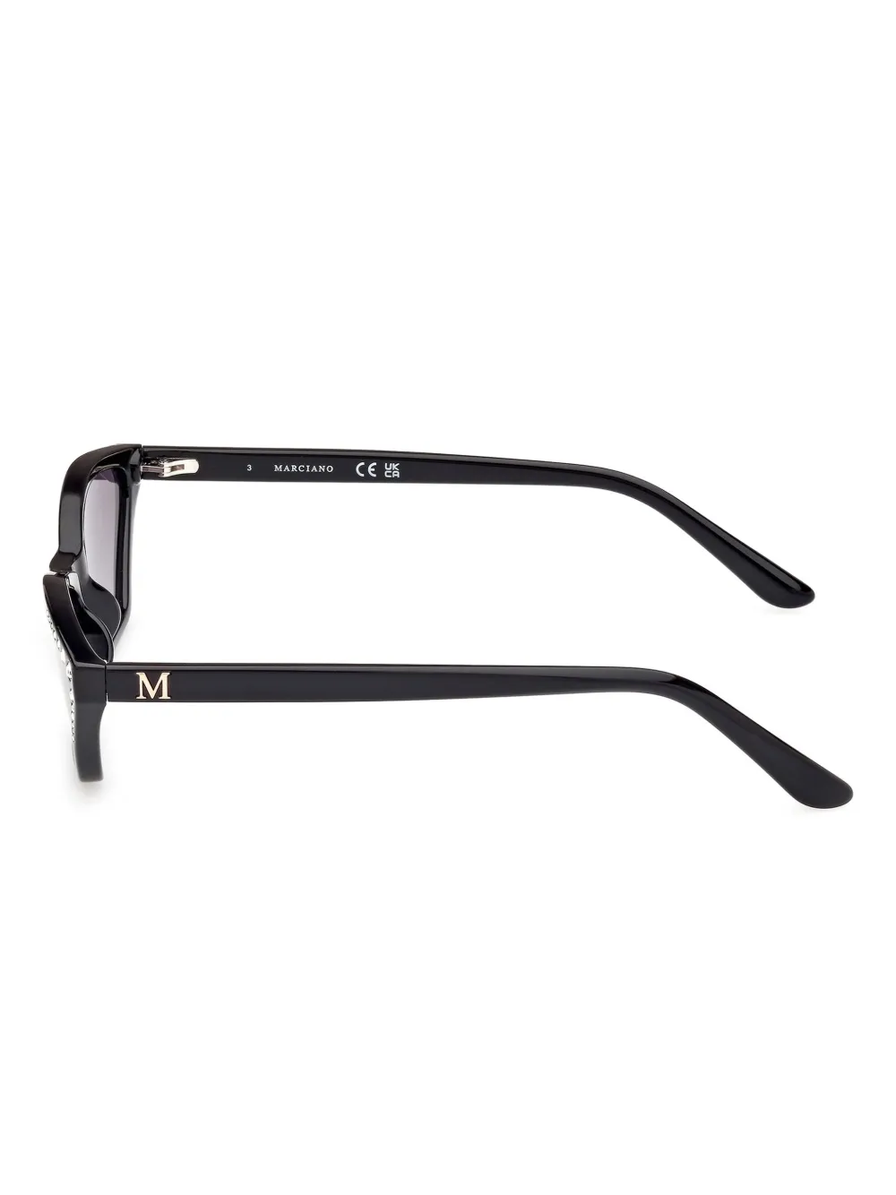 Украшение из черных кристаллов, аппликация в виде логотипа, украшение из кристаллов. Очки поставляются с защитным футляром.