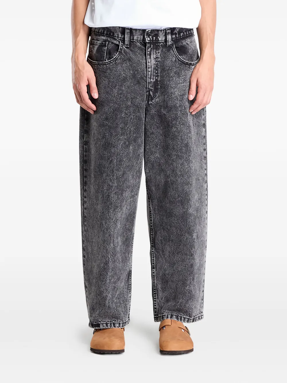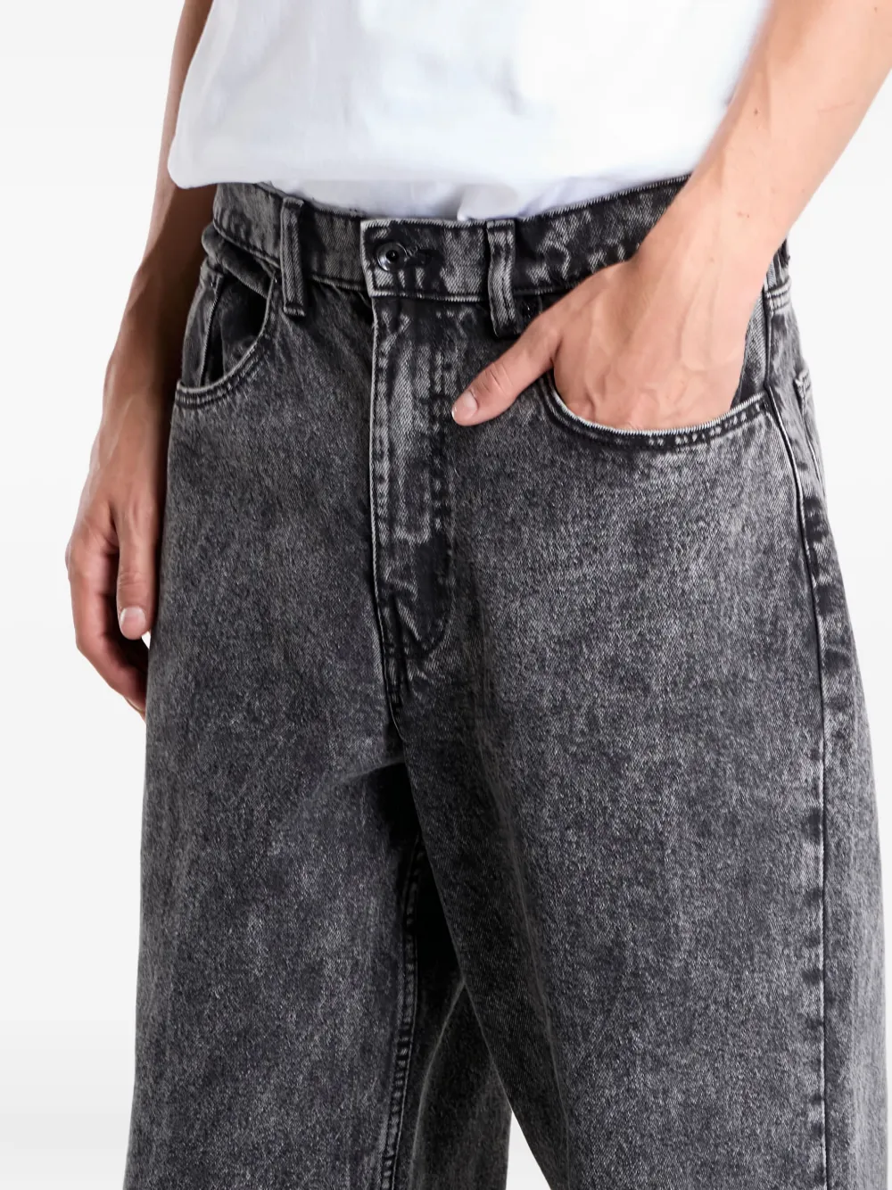Черная кислотная стирка, пять карманов, ширинка на пуговицах