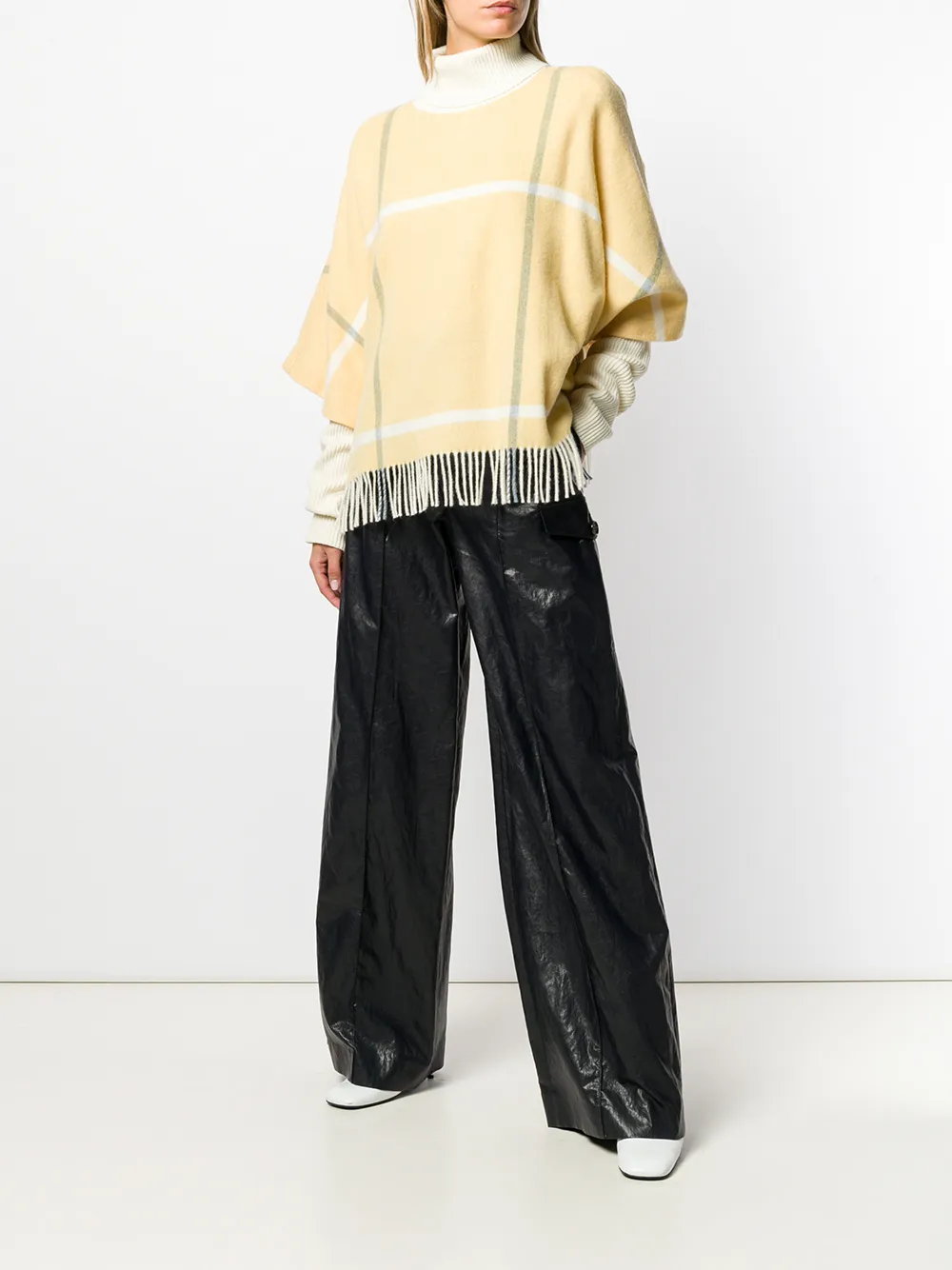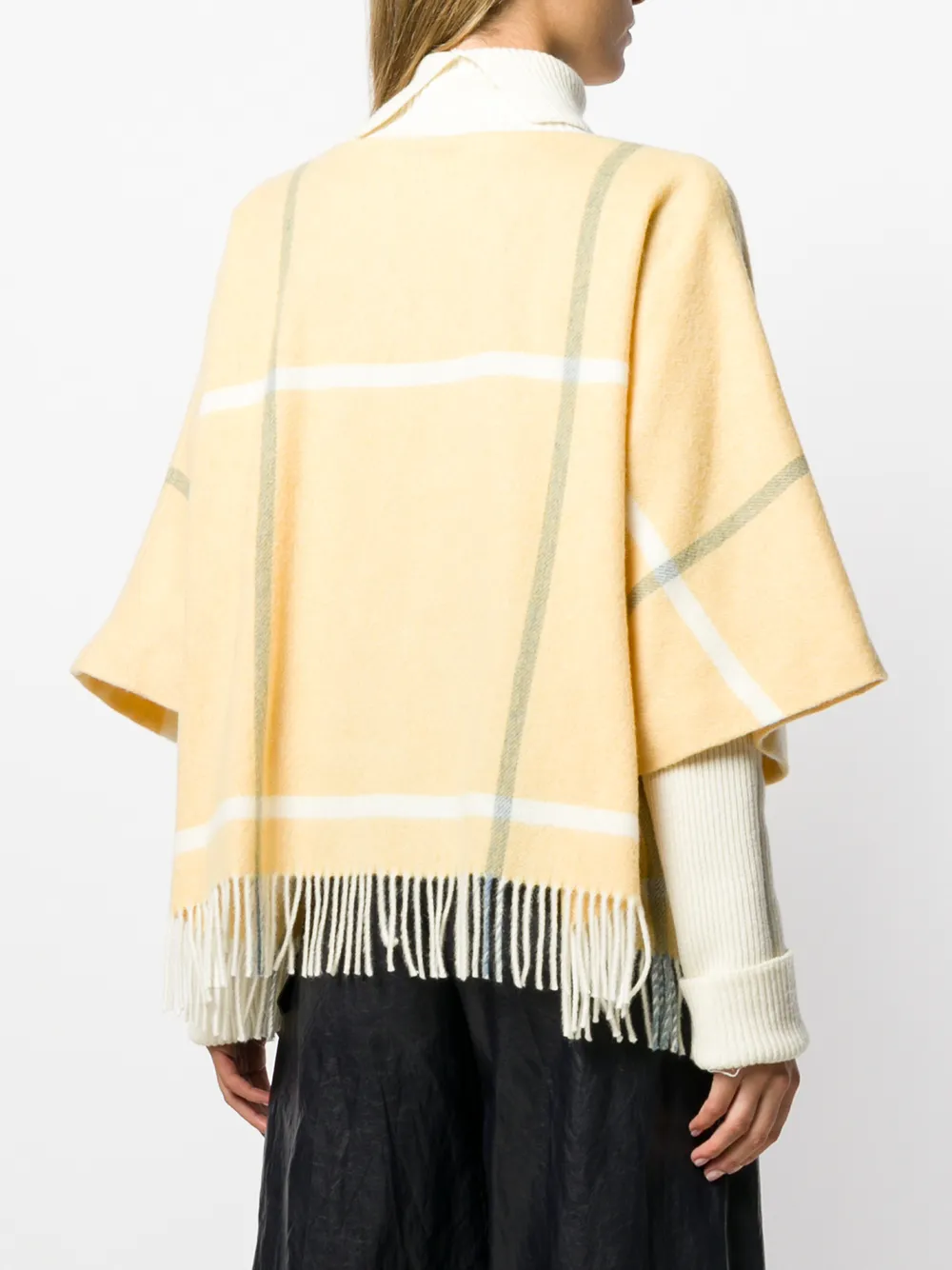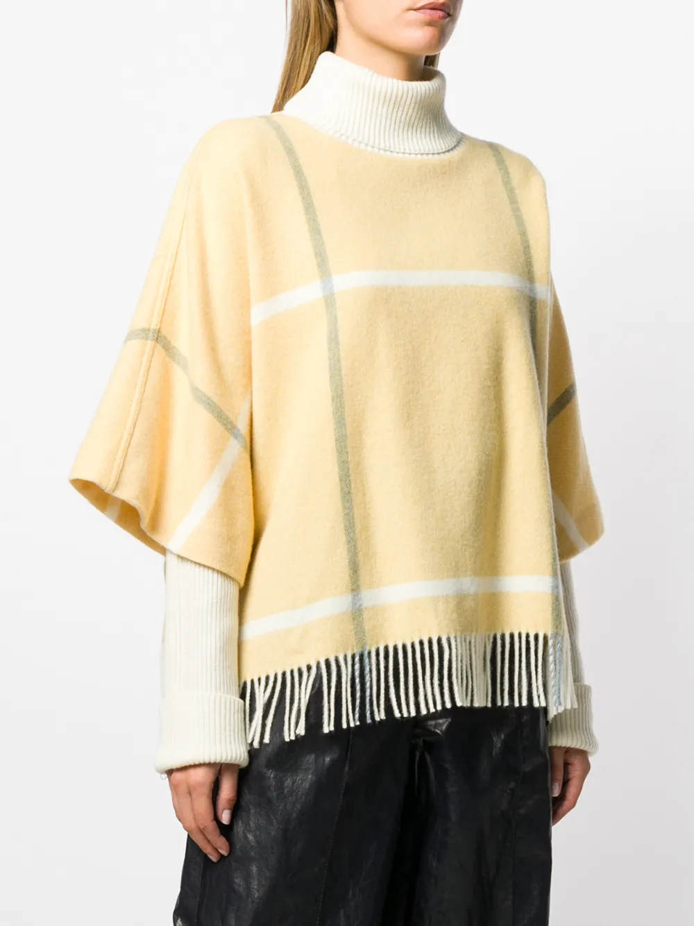 Джемпер в клетку с бахромой от Roksanda. Горловина в рубчик, длинные рукава, манжеты в рубчик, подол с бахромой, узор в клетку и свободный крой. Цвет: желтый.