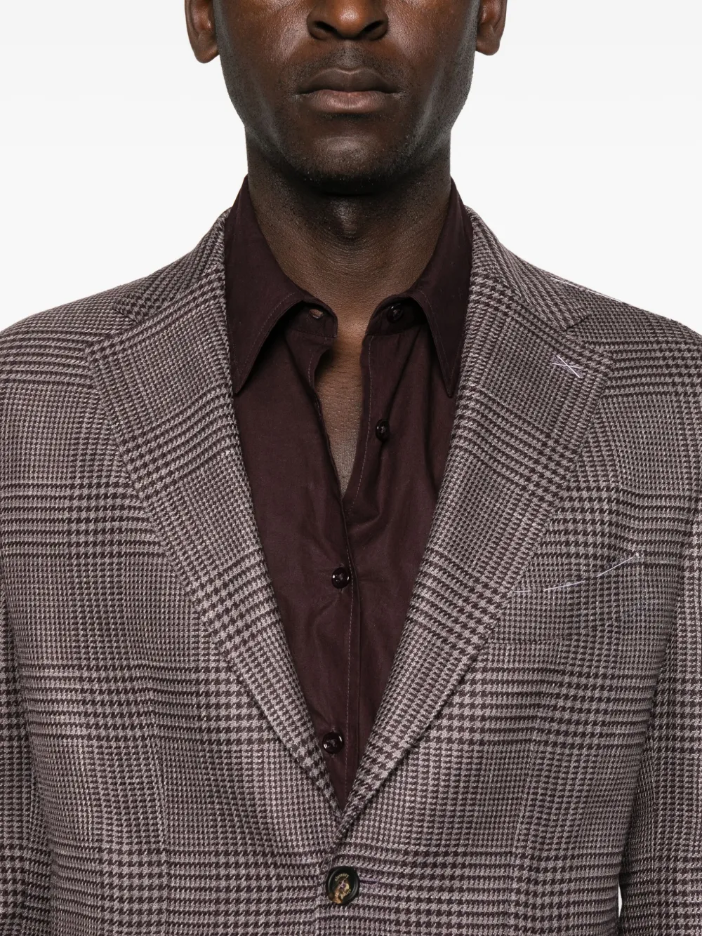 Фиолетовый шерстяной клетчатый пиджак с застежкой на пуговицы, с зазубренным лацканом