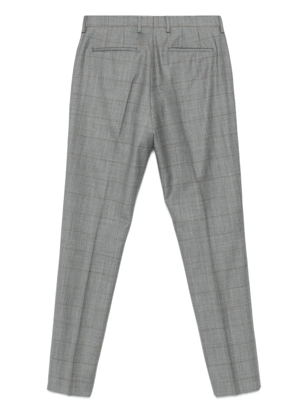 Серая шерстяная ткань с клетчатым узором, прорезные карманы, шлевки для ремня