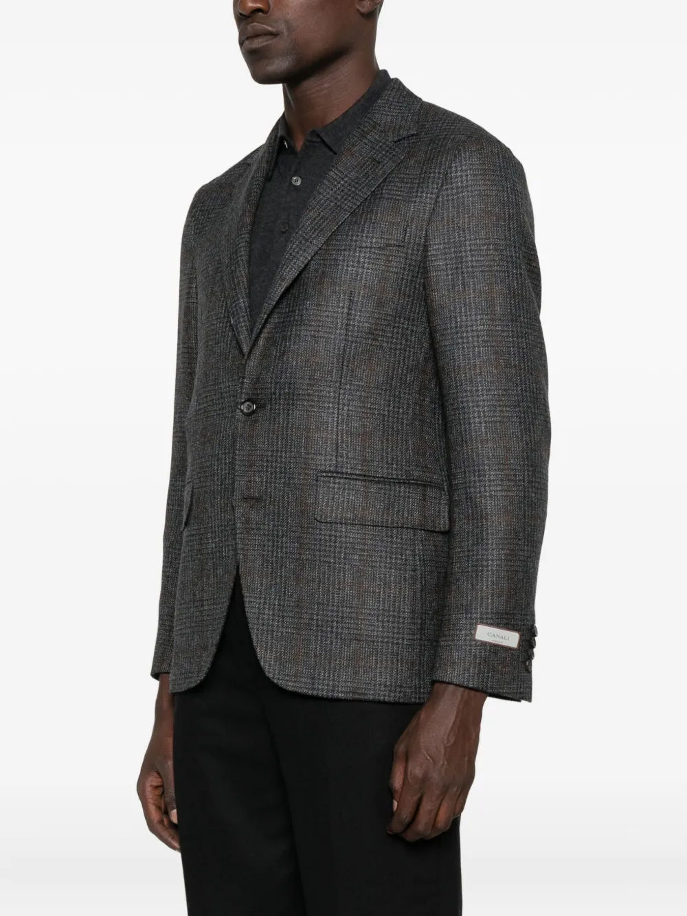 Клетчатый шерстяной пиджак Canali, серый 142 981₽