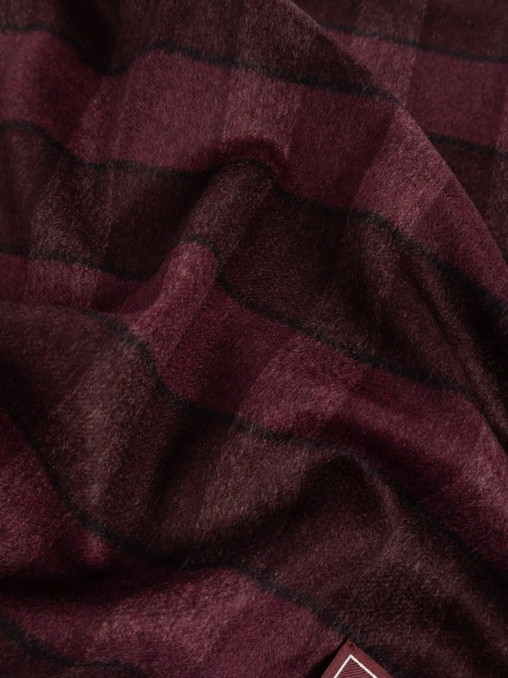 Нашивка с логотипом из смеси кашемира и шерсти темно-красного цвета с клетчатым узором и бахромой, прямоугольной формы