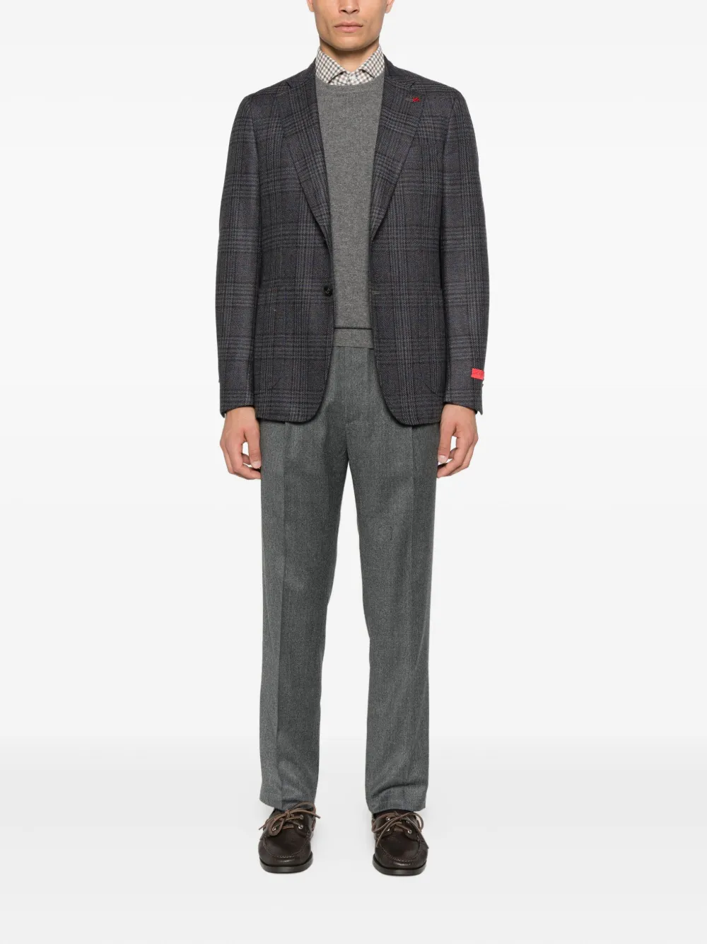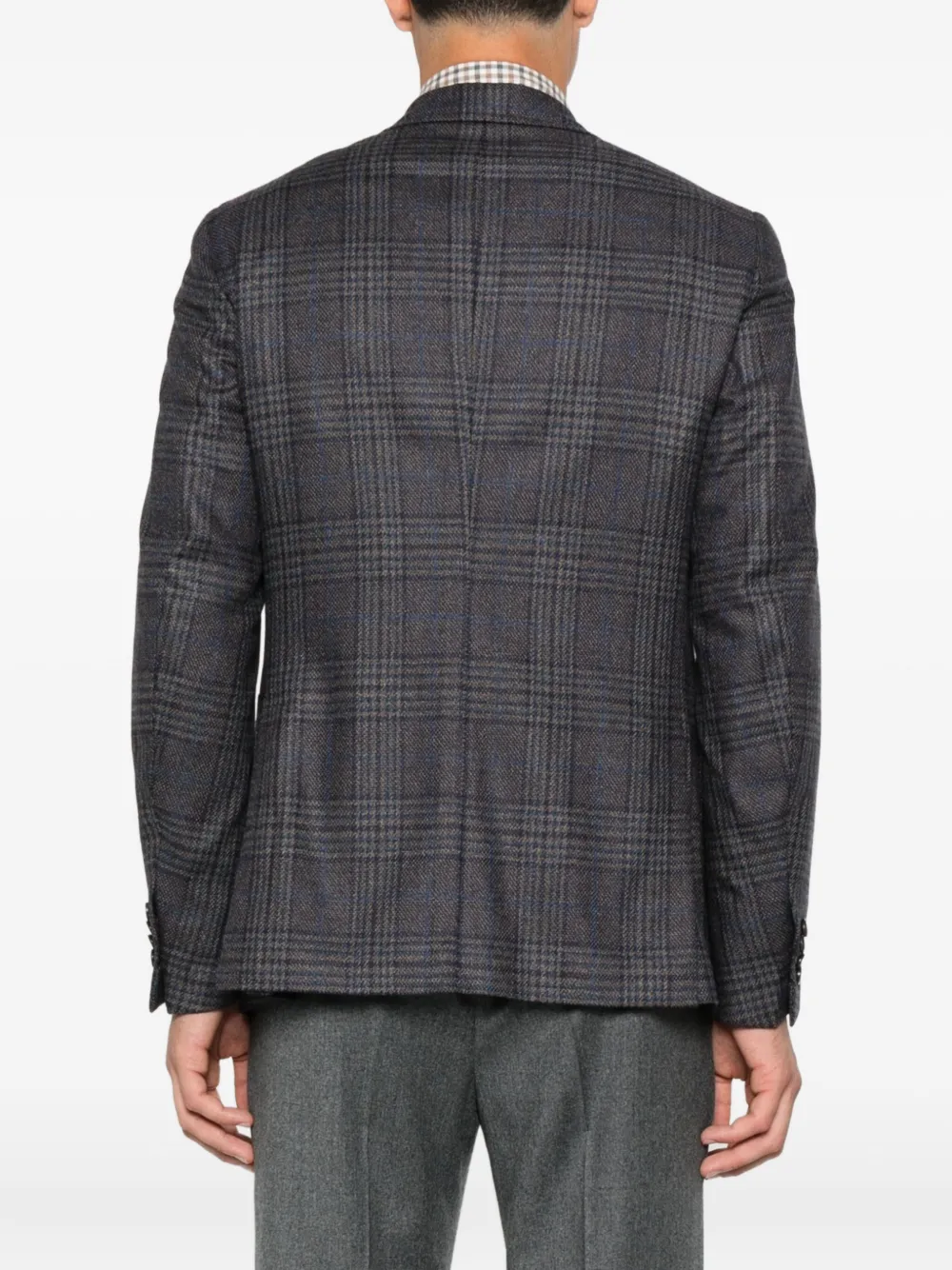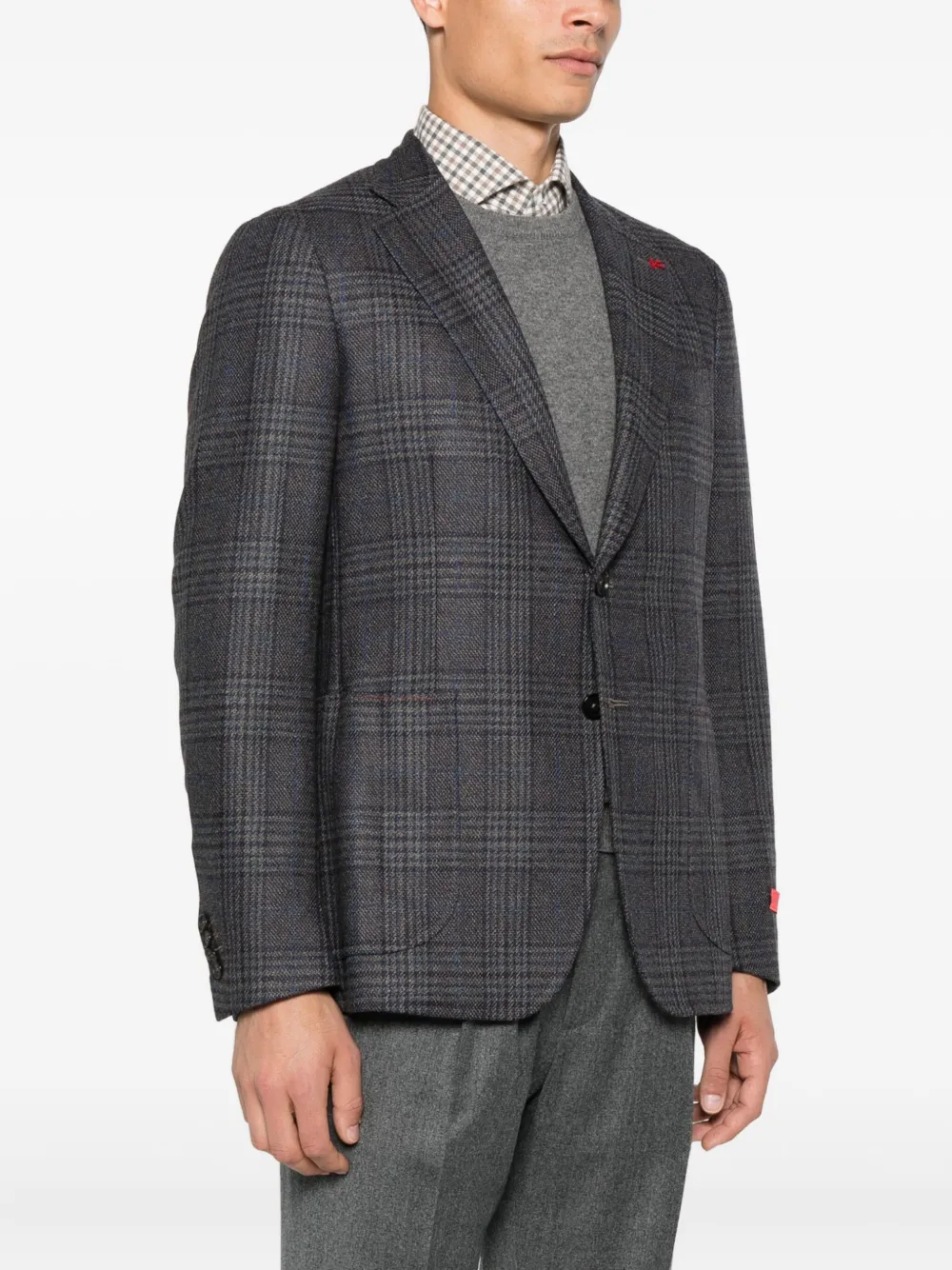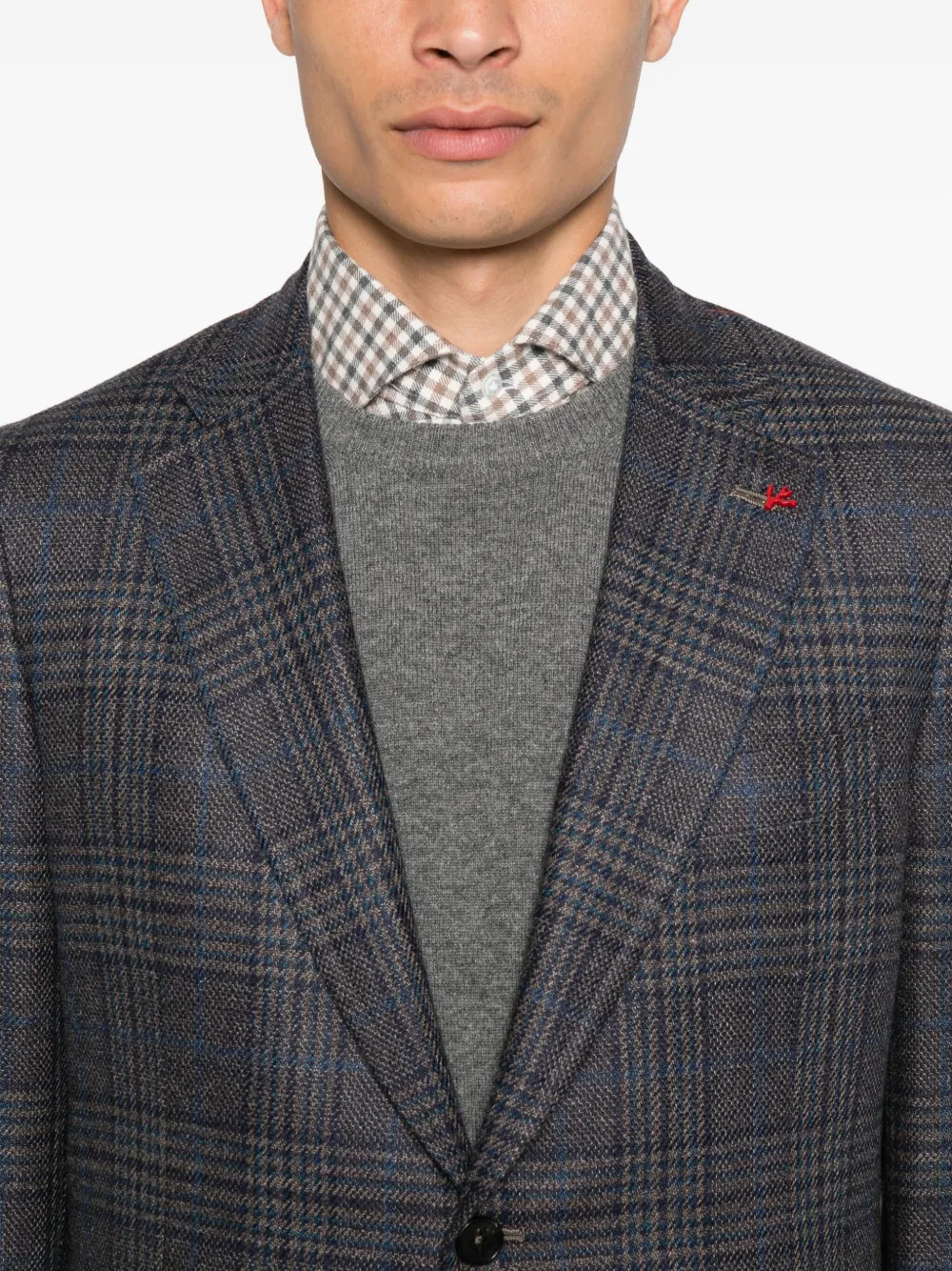 Клетчатый блейзер из смеси шерсти и шелка Isaia, коричневый
