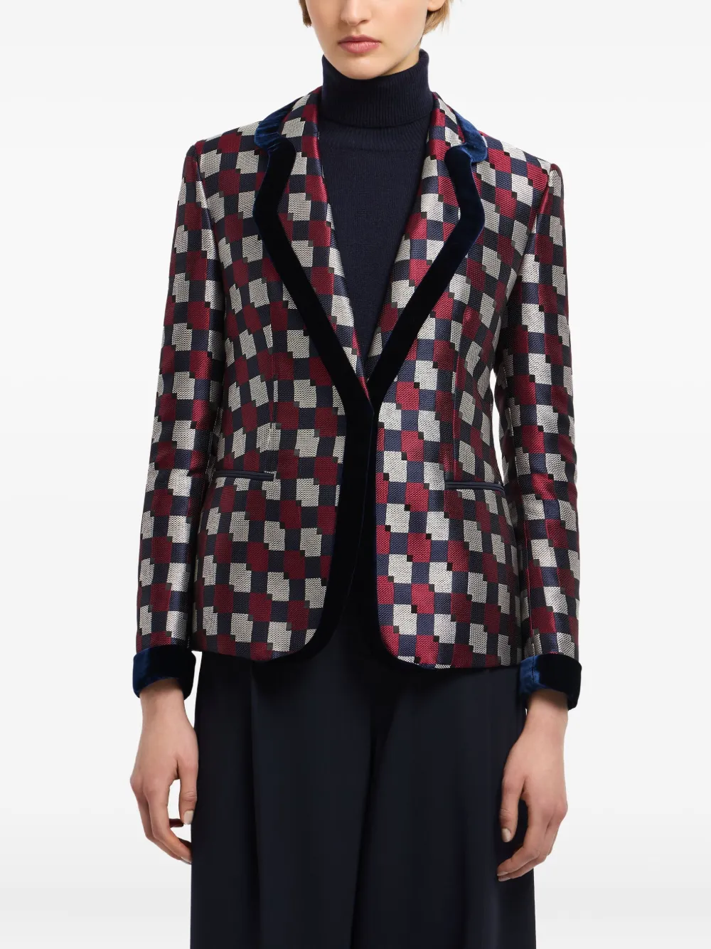 Клетчатый блейзер с бархатной отделкой EMPORIO ARMANI, синий