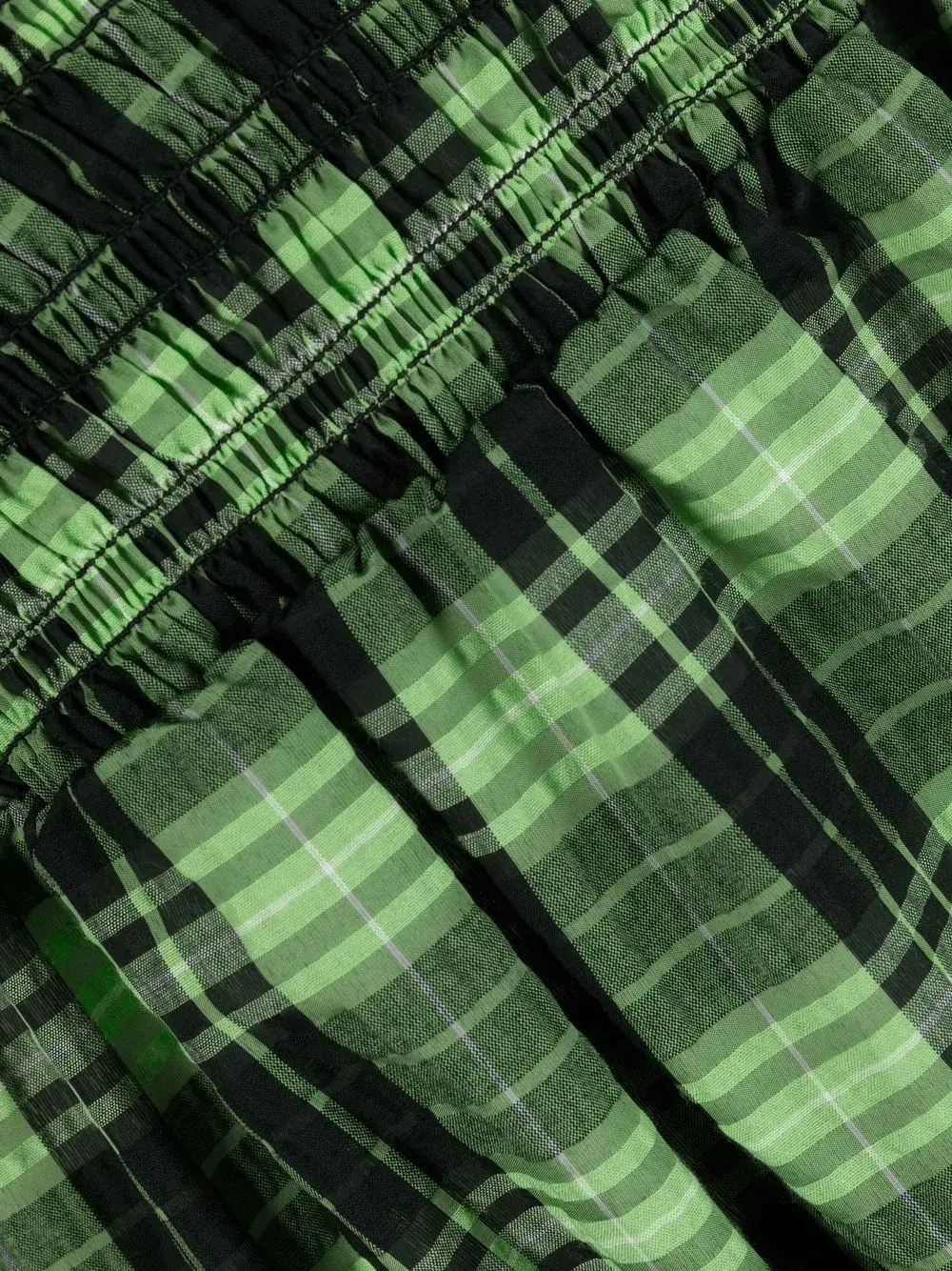 Зеленый, смесовый хлопок, клетчатый узор, квадратный вырез и длинные рукава. Ответственный выбор: Это углеродно-нейтральный продукт. Сертификат подтверждает, что производитель рассчитал, минимизировал и компенсировал углеродный след.