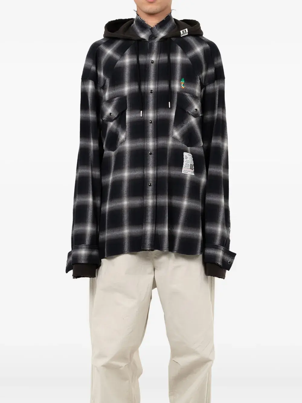 Клетчатая рубашка с капюшоном Maison Mihara Yasuhiro, черный 64 479₽