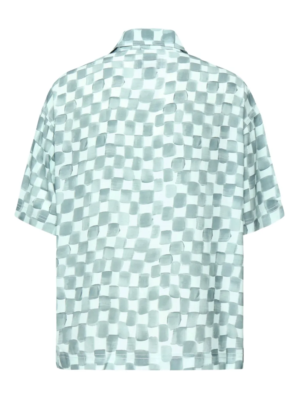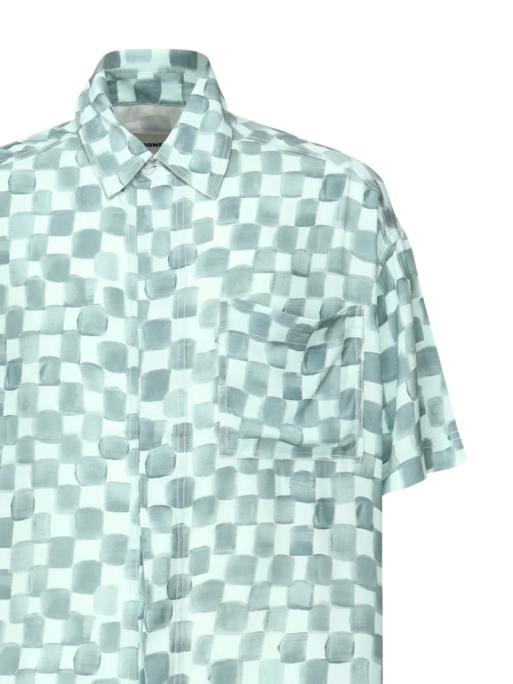 Синий клетчатый узор, короткие рукава, застегивающийся на пуговицы воротник, нагрудный карман