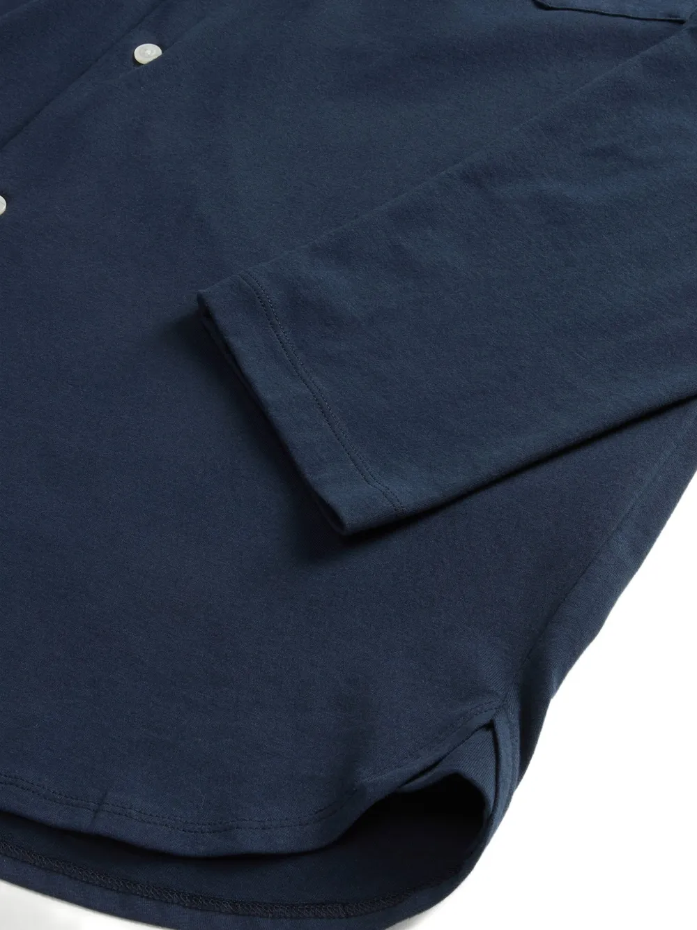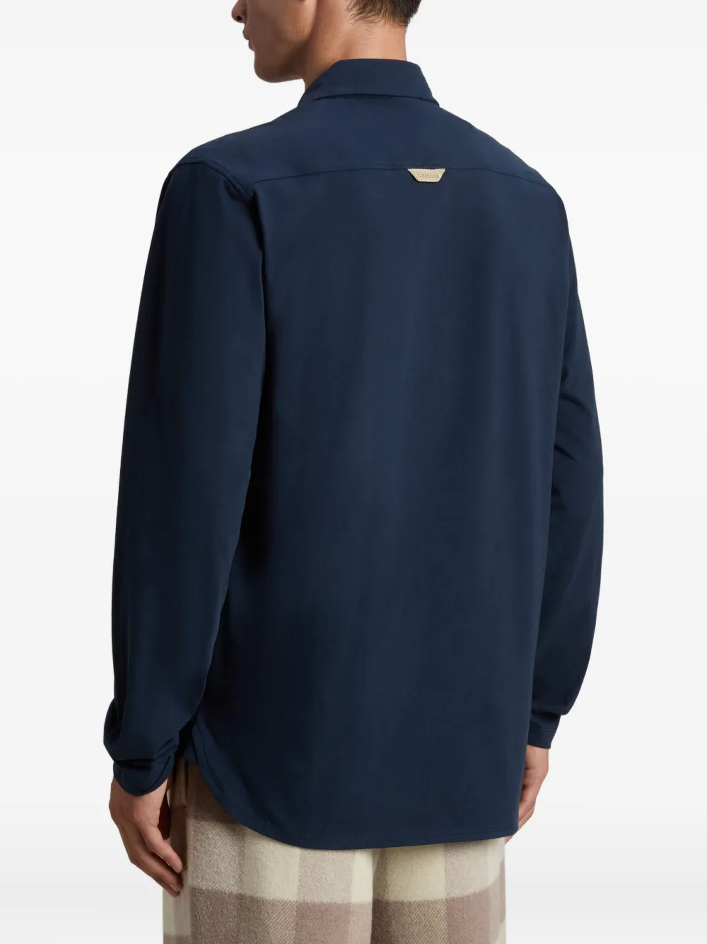 Синие длинные рукава, застежка на пуговицы, накладной нагрудный карман