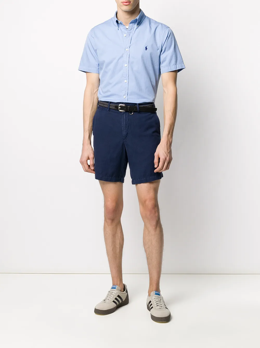 Шорты чинос от Polo Ralph Lauren (Поло Ральф Лорен). Петли для ремня, ширинка на молнии с пуговицей, прорезные карманы по бокам и задние карманы.