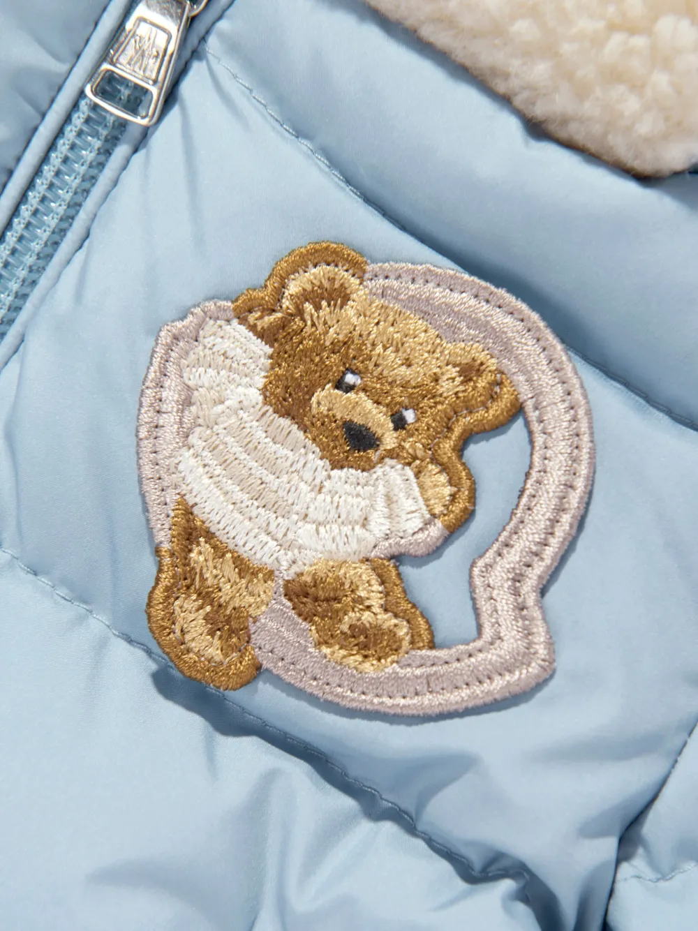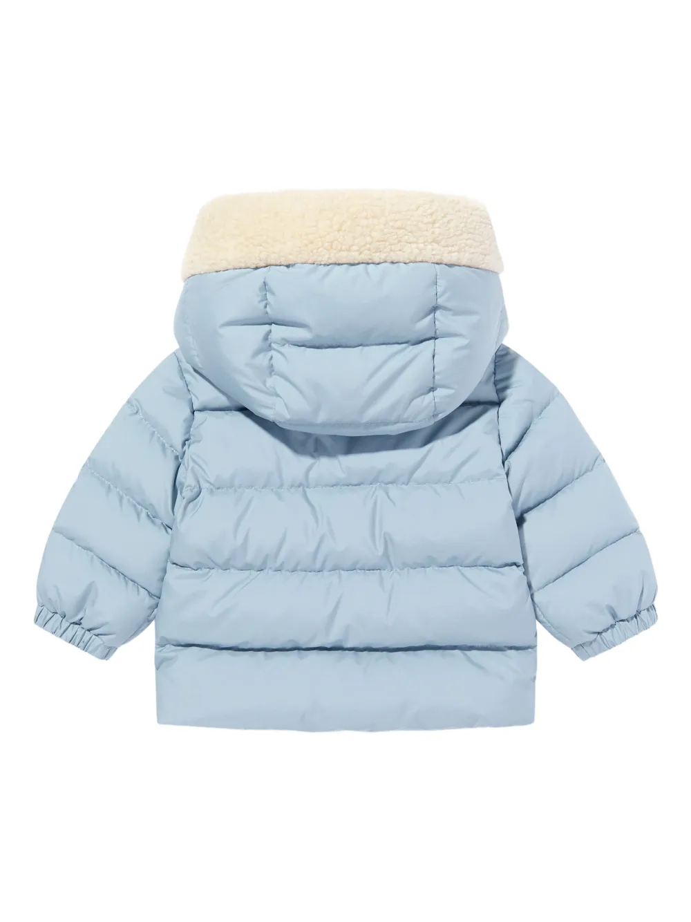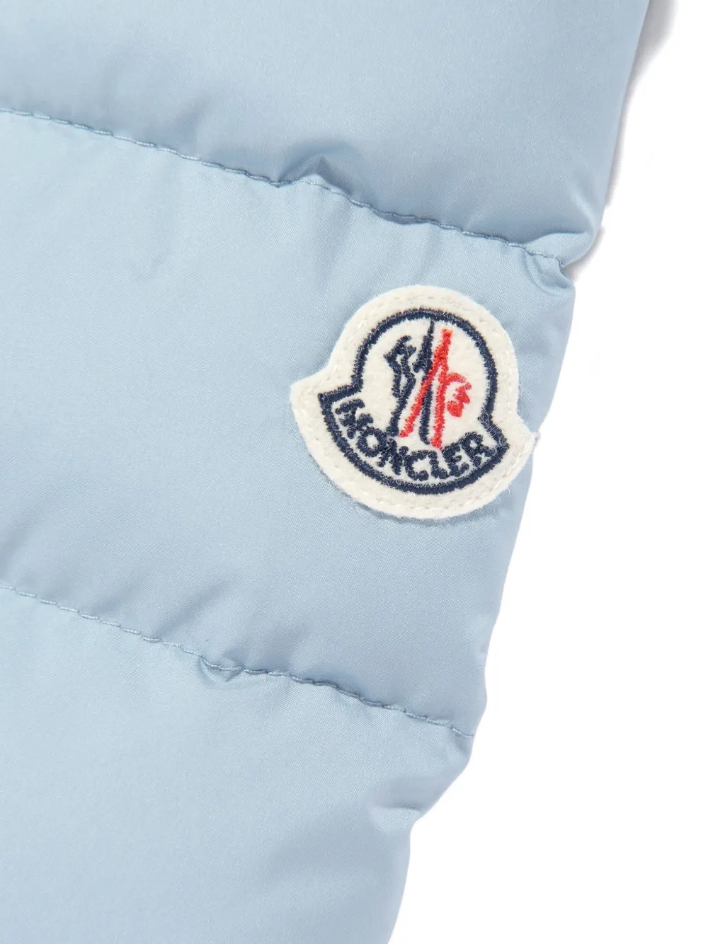 Пуховик с капюшоном и нашивкой Moncler Enfant, синий
