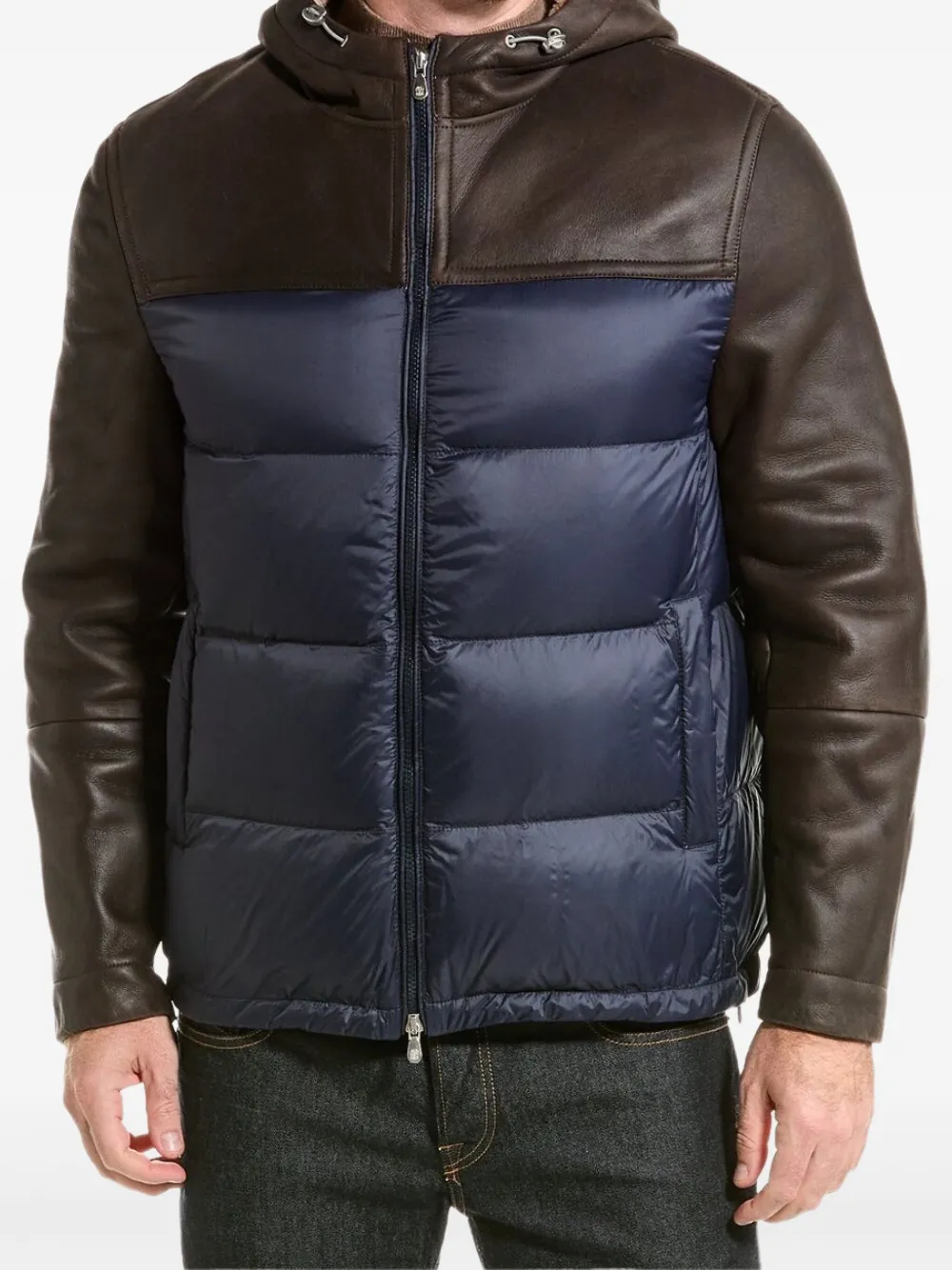 Пуховик в стиле колор-блок Brunello Cucinelli, коричневый