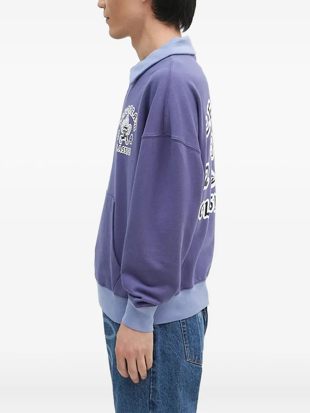 Фиолетовый, застегивающийся на молнию до середины бедра, карман-кенгуру, контрастный воротник, логотип
