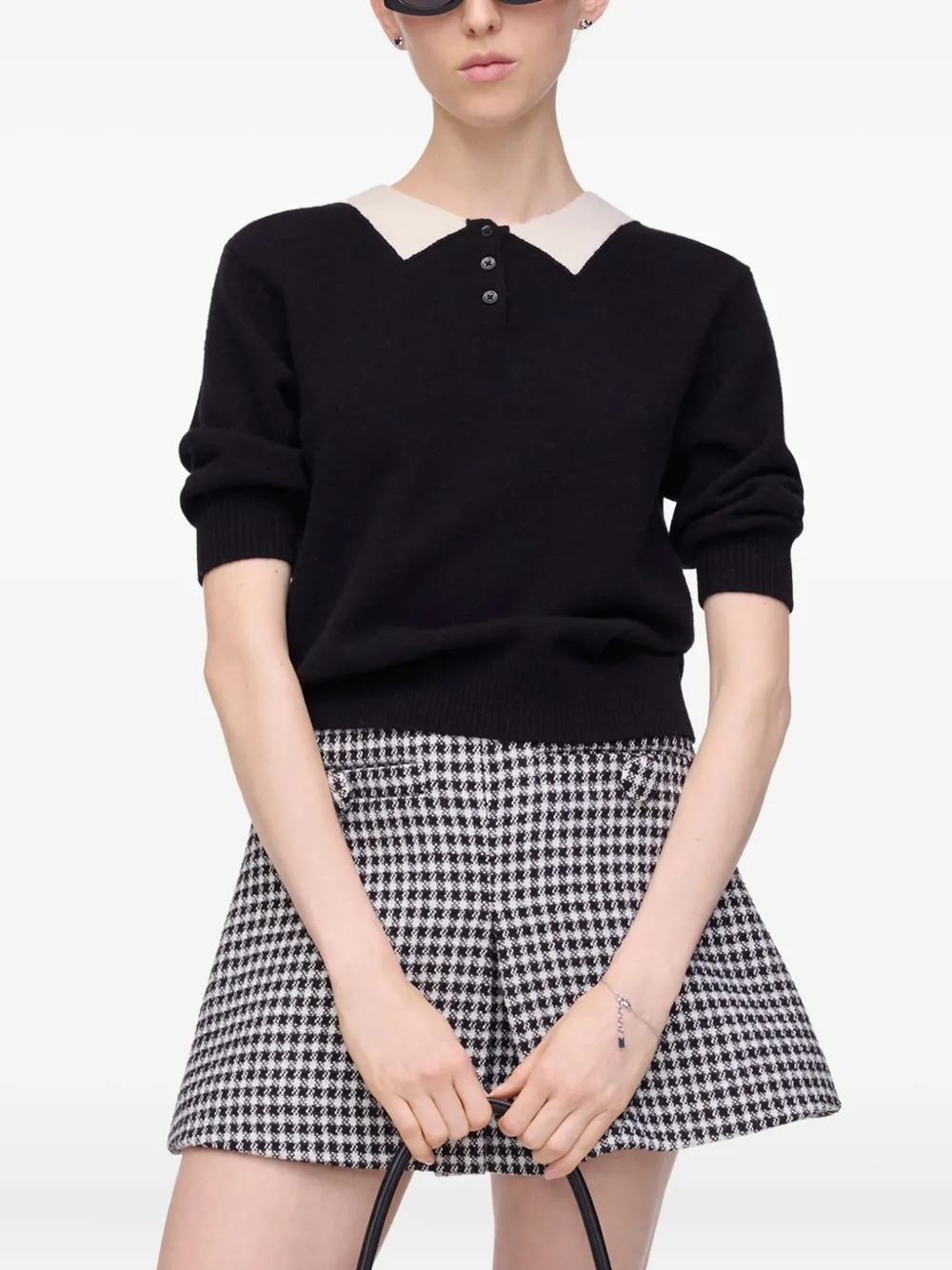 Шерстяной топ с контрастным воротником MARC JACOBS, черный