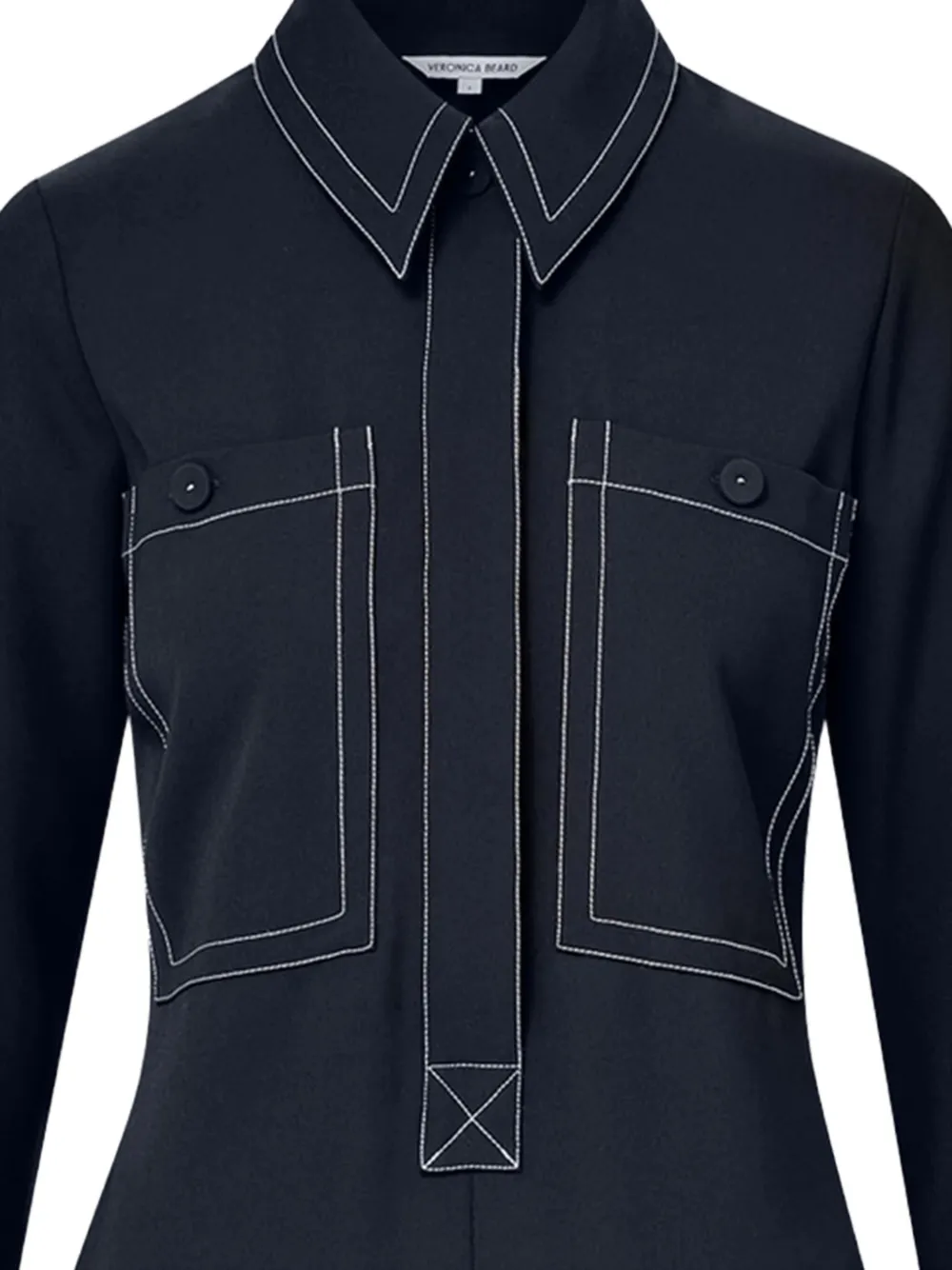 Платье-рубашка мини с контрастной строчкой Veronica Beard, синий