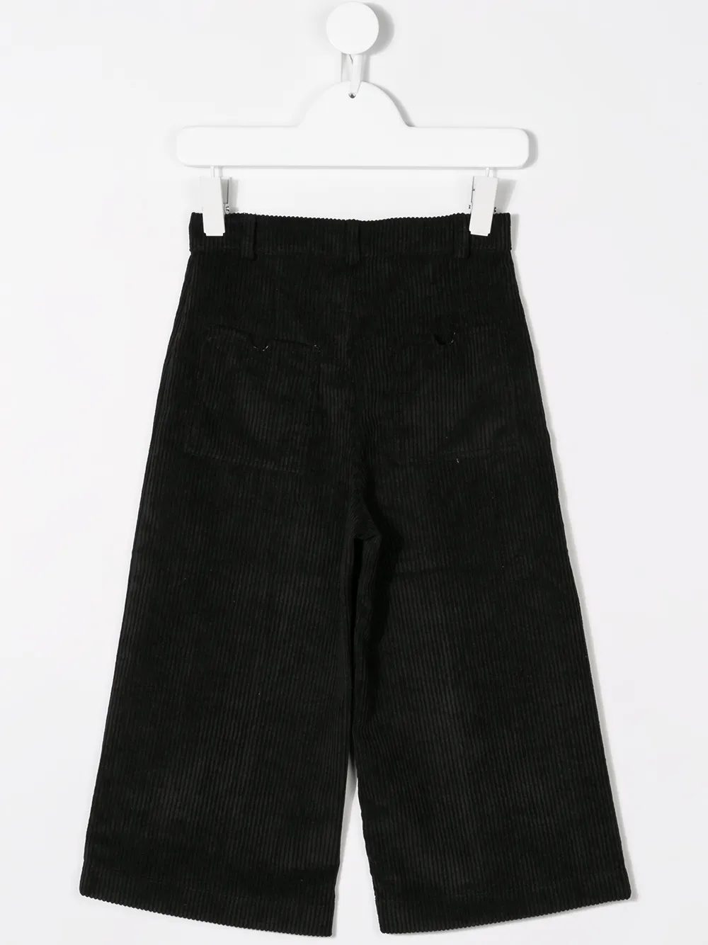 Черные вельветовые брюки от CAFFE' D'ORZO. Пояс с петлями для ремня, ширинка на молнии с пуговицей, задние карманы, широкие брючины.