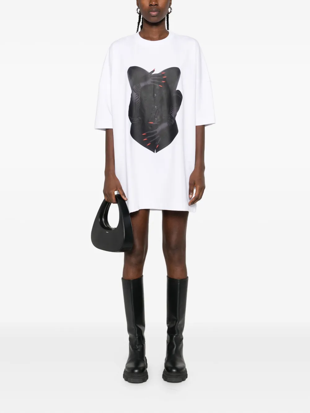 Мини-платье-футболка с принтом корсета HAMZA, белый