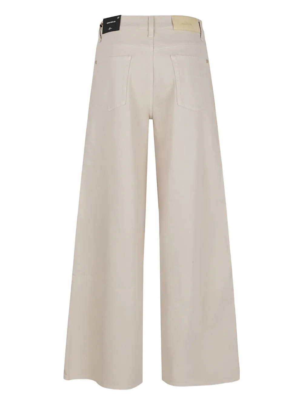 Бежевый хлопковый джемпер с широкими штанинами, высокой талией, шлевками для ремня, пуговицами.
