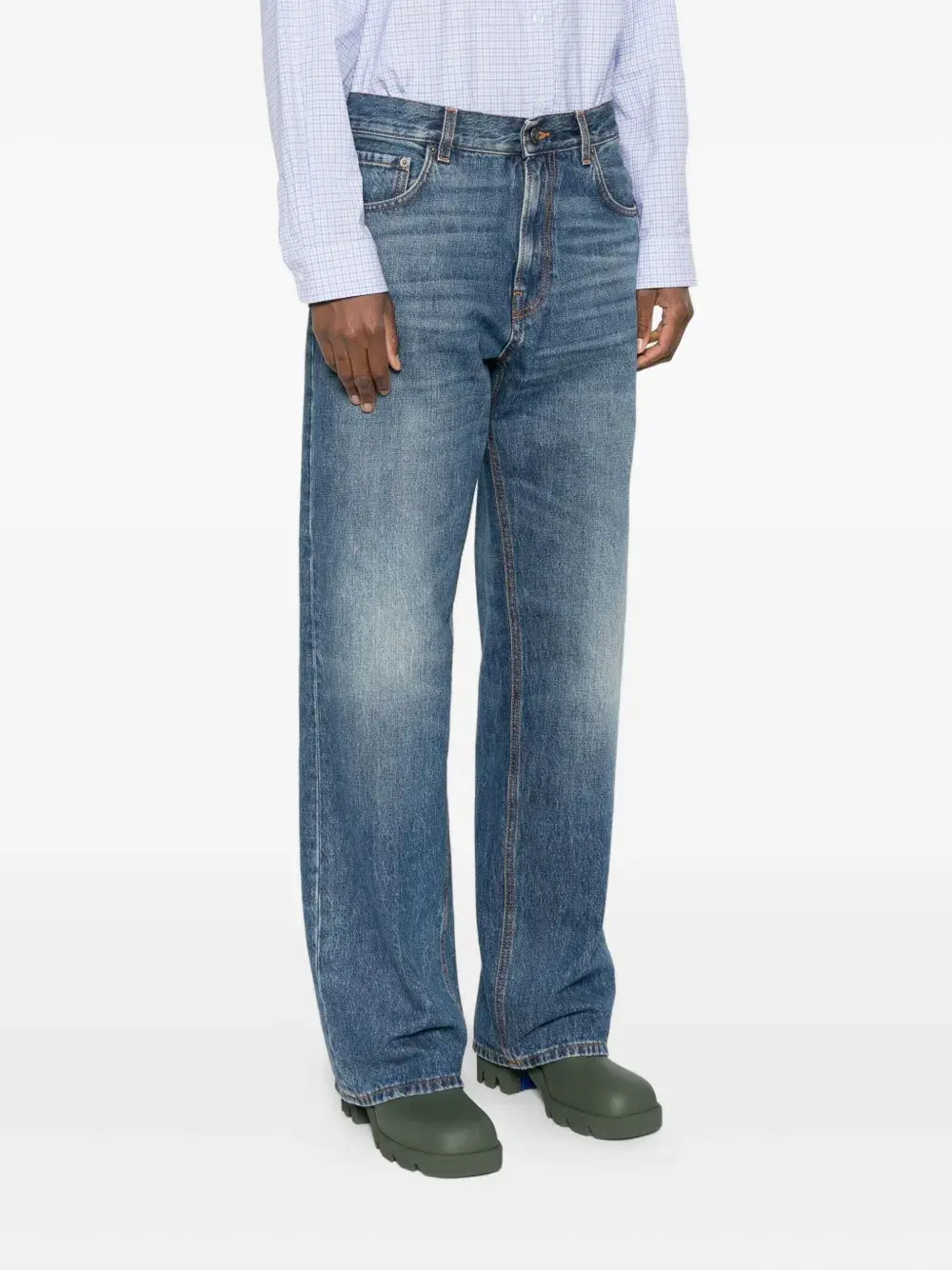Темно-синий фасон с пятью карманами, застежкой на пуговицы и шлевками для ремня